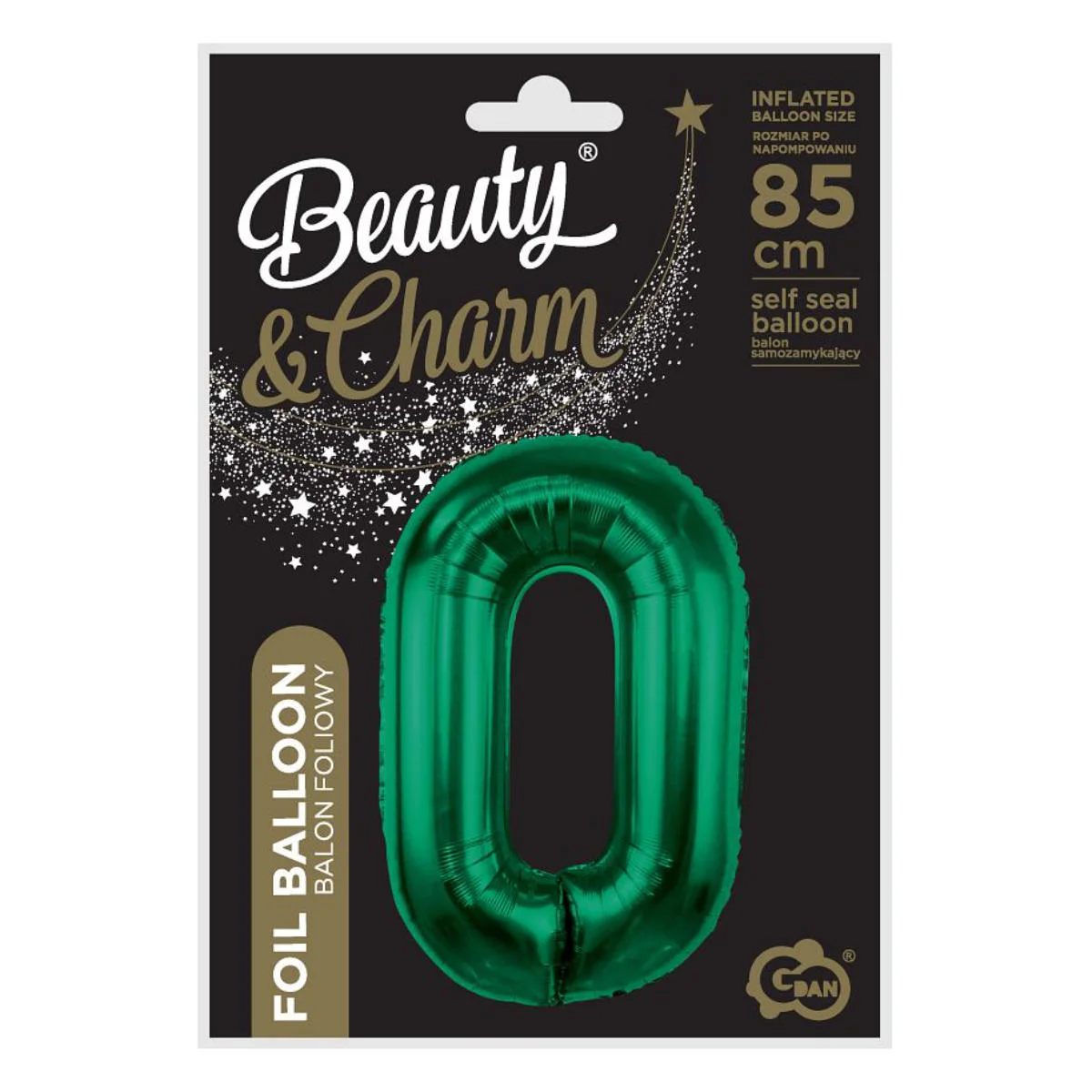 Balon foliowy w kształcie cyfry zero w głębokim odcieniu zieleni, do samodzielnego napełnienia helem lub powietrzem. Balon unosi się po napełnieniu helem i wyposażony jest w wygodny system samozamykający, zabezpieczający przed uciekaniem powietrza. Balon po napełnieniu ma wysokość ok. 85cm. Wykonany jest z wytrzymałej folii, a jego wymiary powodują, że idealnie nadaje się na centralny element dekoracji balonowej lub jako samodzielna ozdoba.