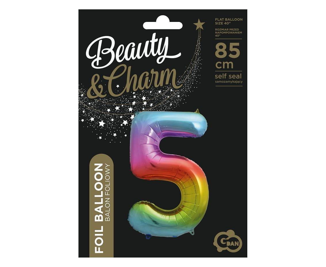 Balon Foliowy 85cm Cyfra 5 - Tęczowy