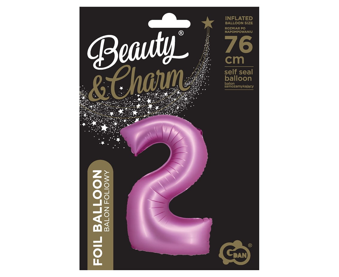 Balon foliowy w kształcie cyfry dwa, w kolorze różowym, do samodzielnego napełnienia. Balon unosi się po napełnieniu helem i wyposażony jest w wygodny system samozamykający, więc nie musimy obawiać się uciekającego powietrza.