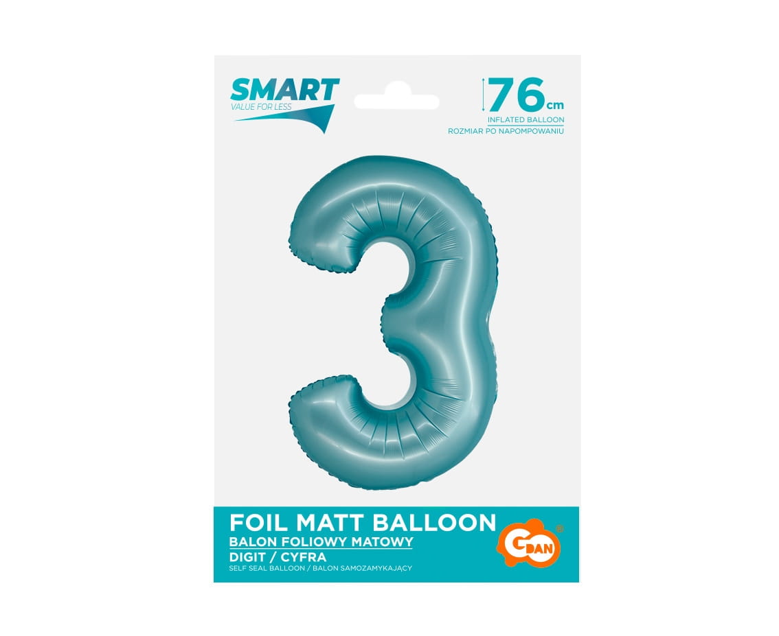 Balon foliowy w kształcie cyfry trzy do samodzielnego napełnienia. Balon unosi się po napełnieniu helem i wyposażony jest w wygodny system samozamykający, więc nie musimy obawiać się uciekającego powietrza.