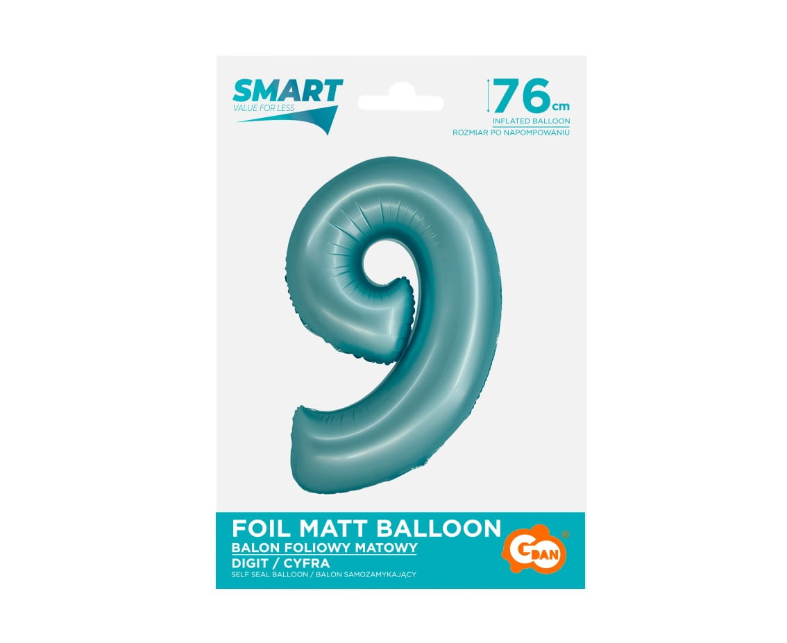 Balon Foliowy Cyfra 9 76cm - Jasny Niebieski