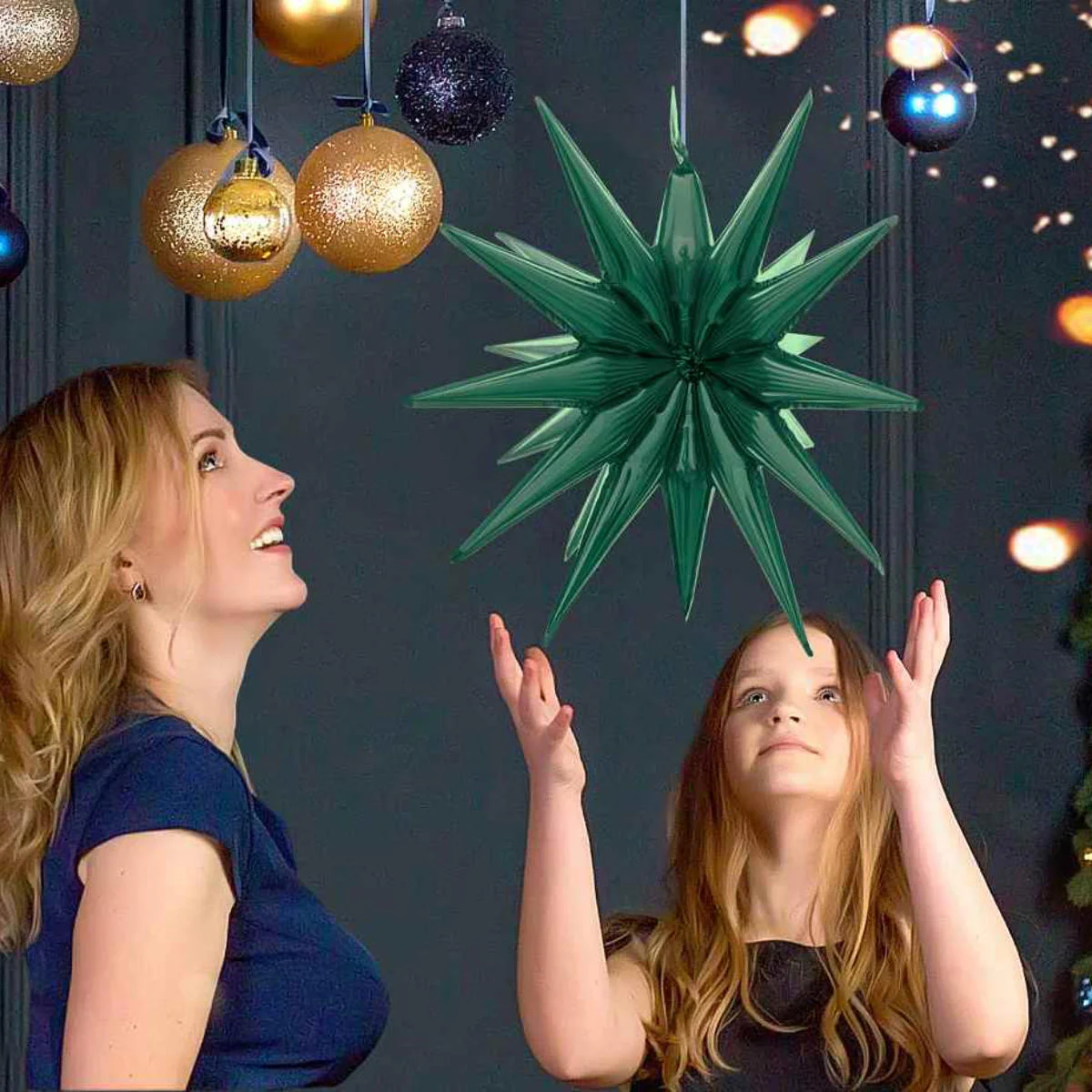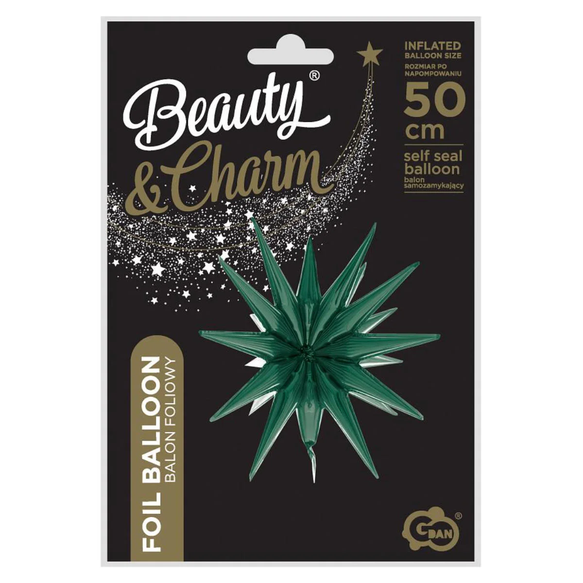Balon foliowy, przestrzenna gwiazda w kolorze butelkowej zieleni. Balon przeznaczony do napełniania powietrzem. Doskonały na każdą okazję, będzie świetnym prezentem lub dekoracją. Balon wyposażony jest w wygodny system samozamykający, więc nie musimy obawiać się uciekającego powietrza. Aby napełnić balon powietrzem wystarczy dołączoną do zestawu rurkę (słomkę) włożyć do otworu napełniania i go nadmuchać. Można również użyć pompki do balonów.