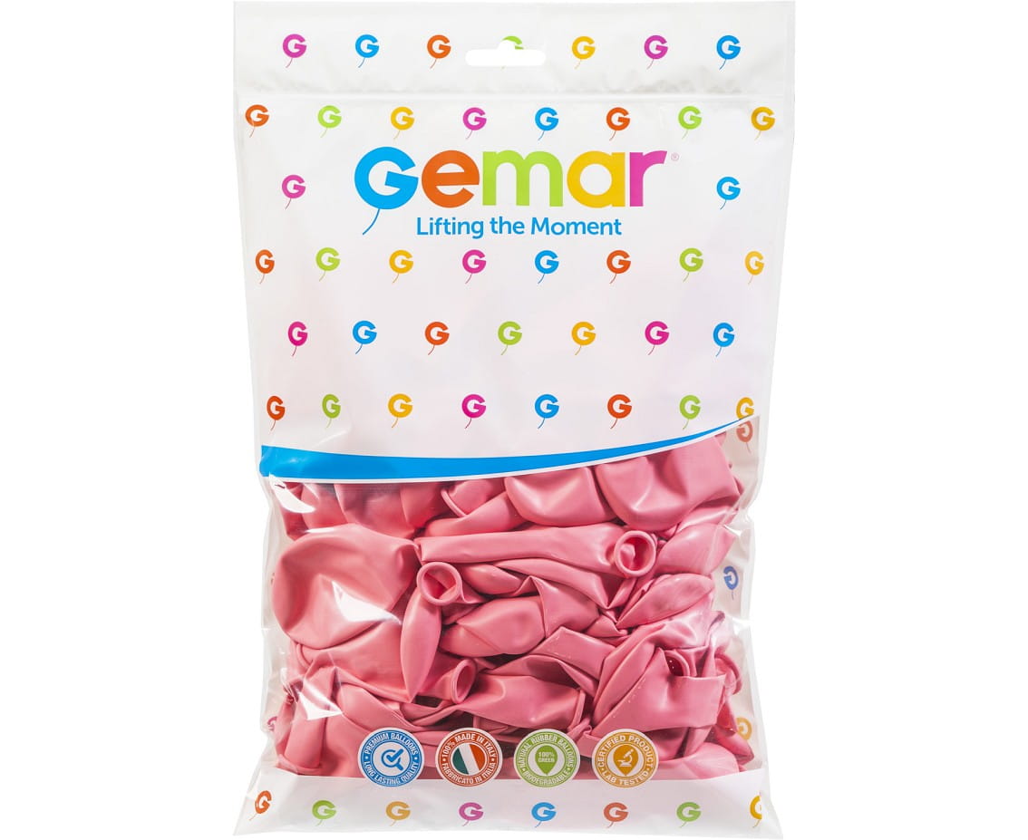 Balony gumowe – lateksowe wysokiej jakości, europejskiego producenta , firmy Gemar. Balony cechują się wytrzymałością a po napompowaniu powietrzem lub helem piękną barwą. Opakowanie zawiera 100 sztuk produktów. Po napompowaniu balony mają około 30cm wysokości. Długo utrzymują swój kształt, nie pękają z byle powodu. Odpowiednio długa końcówka ułatwia pompowanie (pompką lub kompresorem) i zawiązywanie balonu.