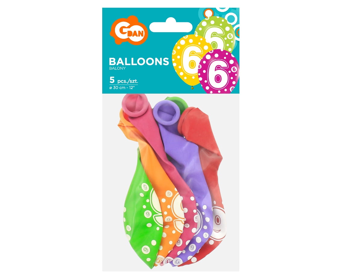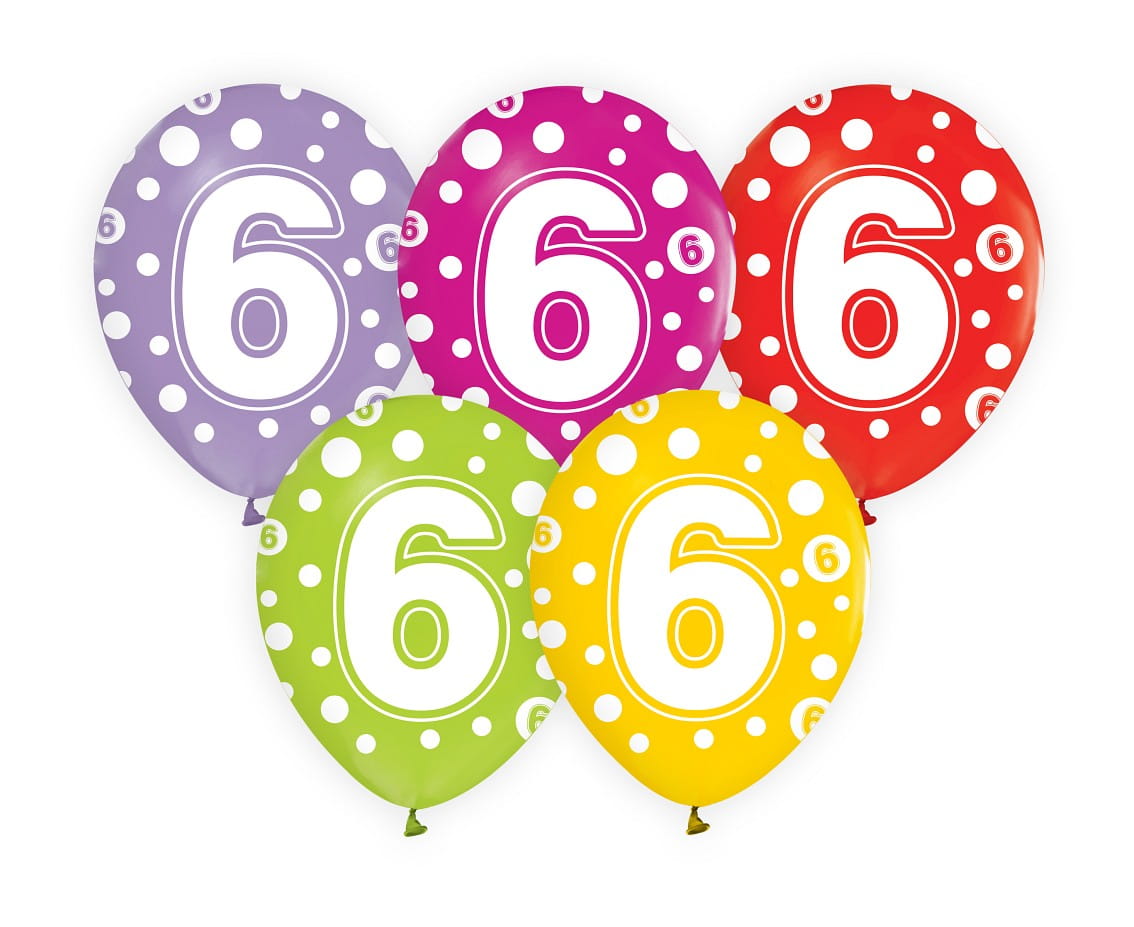 Balony z Cyframi 6 w Groszki kpl. 5szt