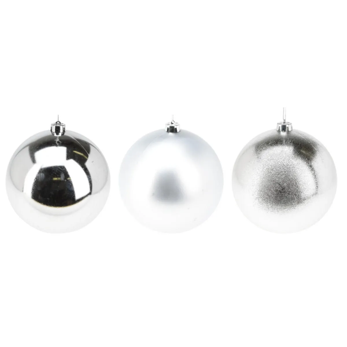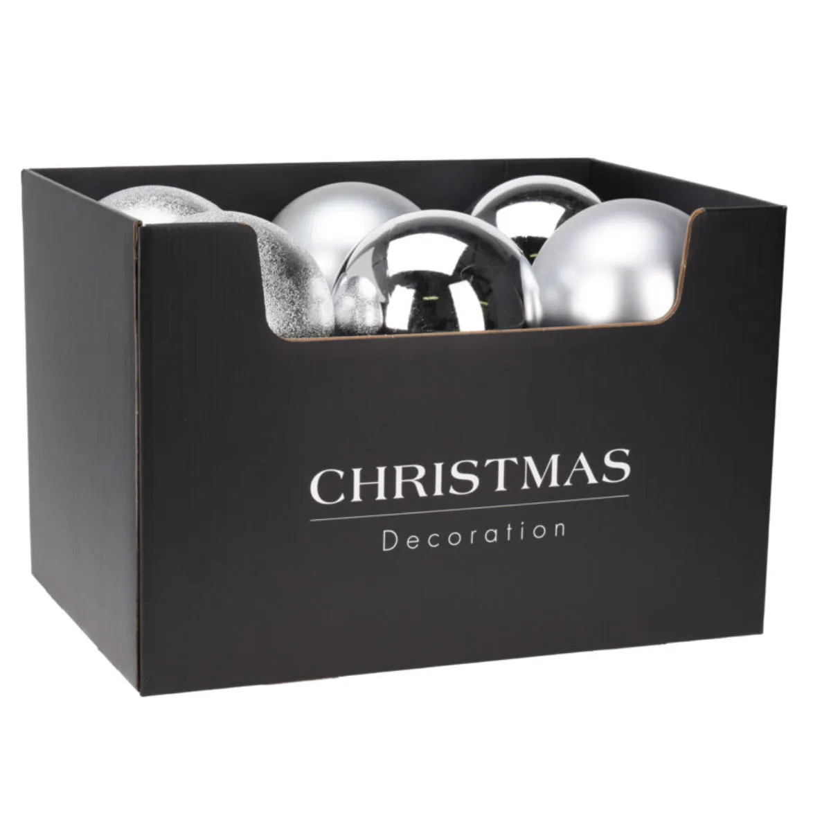 Klasyczna, srebrna bombka choinkowa o średnicy 18cm. Wykonana z wysokiej jakości tworzywa sztucznego, nietłukąca kula ze srebrnym sznureczkiem umożliwiającym zawieszanie. Bombki tej wielkości można z powodzeniem użyć do dużych choinek, girland, kompozycji z użyciem gałęzi igliwia lub dekoracji stołów na imprezy firmowe.