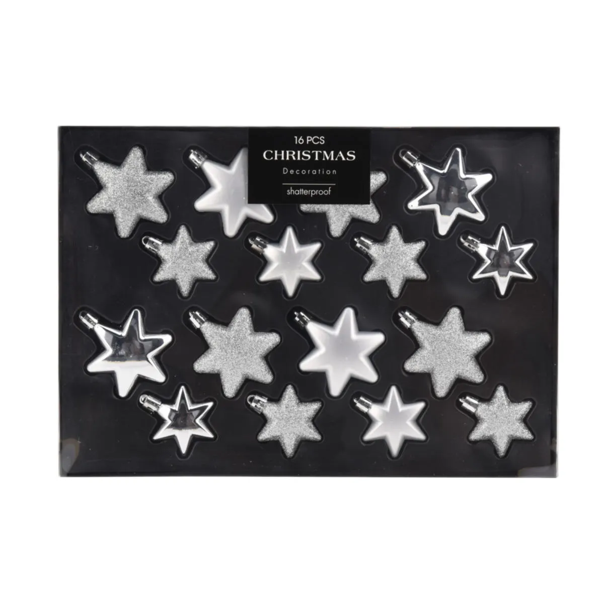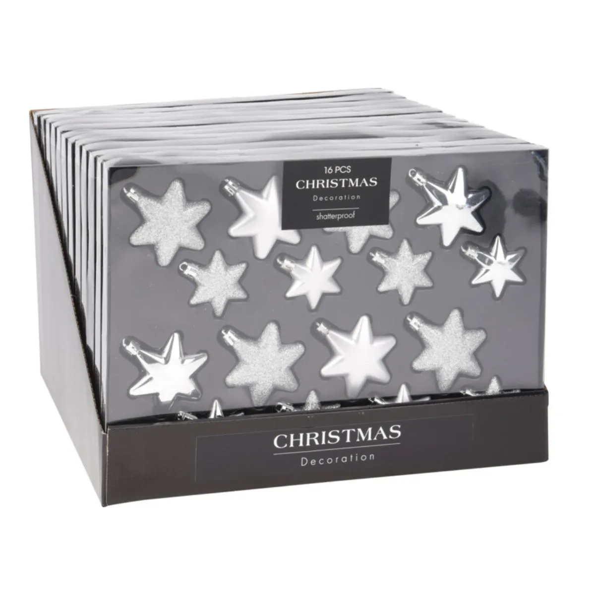 Bombki Choinkowe Gwiazdki Srebrne kpl. 16szt
