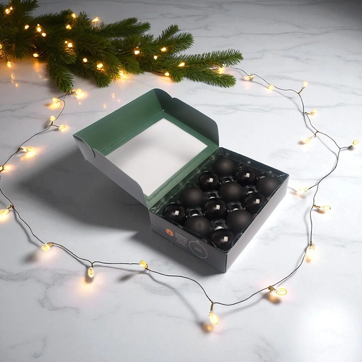 Bombki Szklane 57mm Kartonik kpl. 12szt Błysk/Mat - Czarny