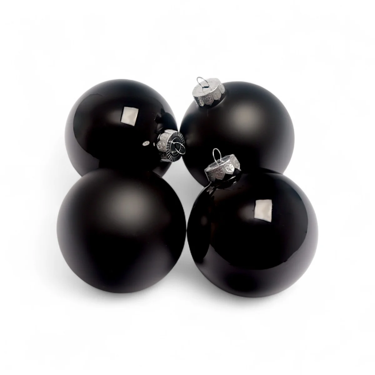 Czarne, szklane bombki z wysokiej jakości szkła, pakowane po 12 sztuk. Bombki mają średnicę 57cm, co powoduje, że dobrze zaprezentują się w każdej wielkości świątecznej dekoracji. W komplecie znajdują się bombki szklane w wersji matowej i błyszczącej. Idealnie sprawdzą się jako dekoracja choinki lub girlandy. Wszystkie bombki posiadają uchwyty do zawieszenia i zapakowane są w estetyczny kartonik ułatwiający przechowywanie.