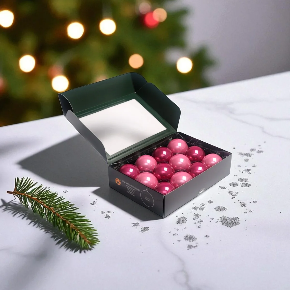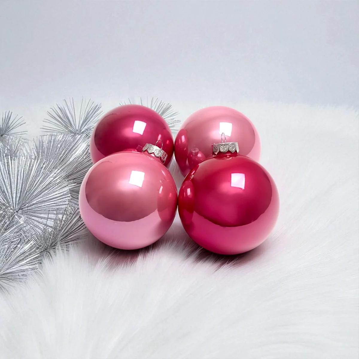 Różowe, szklane bombki z wysokiej jakości szkła, z opalizującą poświatą. Bombki mają średnicę 57cm i dobrze prezentują się w każdej wielkości świątecznej dekoracji. Idealnie sprawdzą się jako dekoracja choinki lub girlandy. Wszystkie bombki posiadają uchwyty do zawieszenia i zapakowane są w estetyczny kartonik ułatwiający przechowywanie.