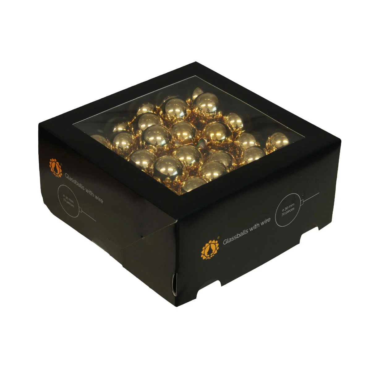 Bombki Szklane na Druciku 30mm Kartonik kpl. 72szt Błysk - Jasny Złoty