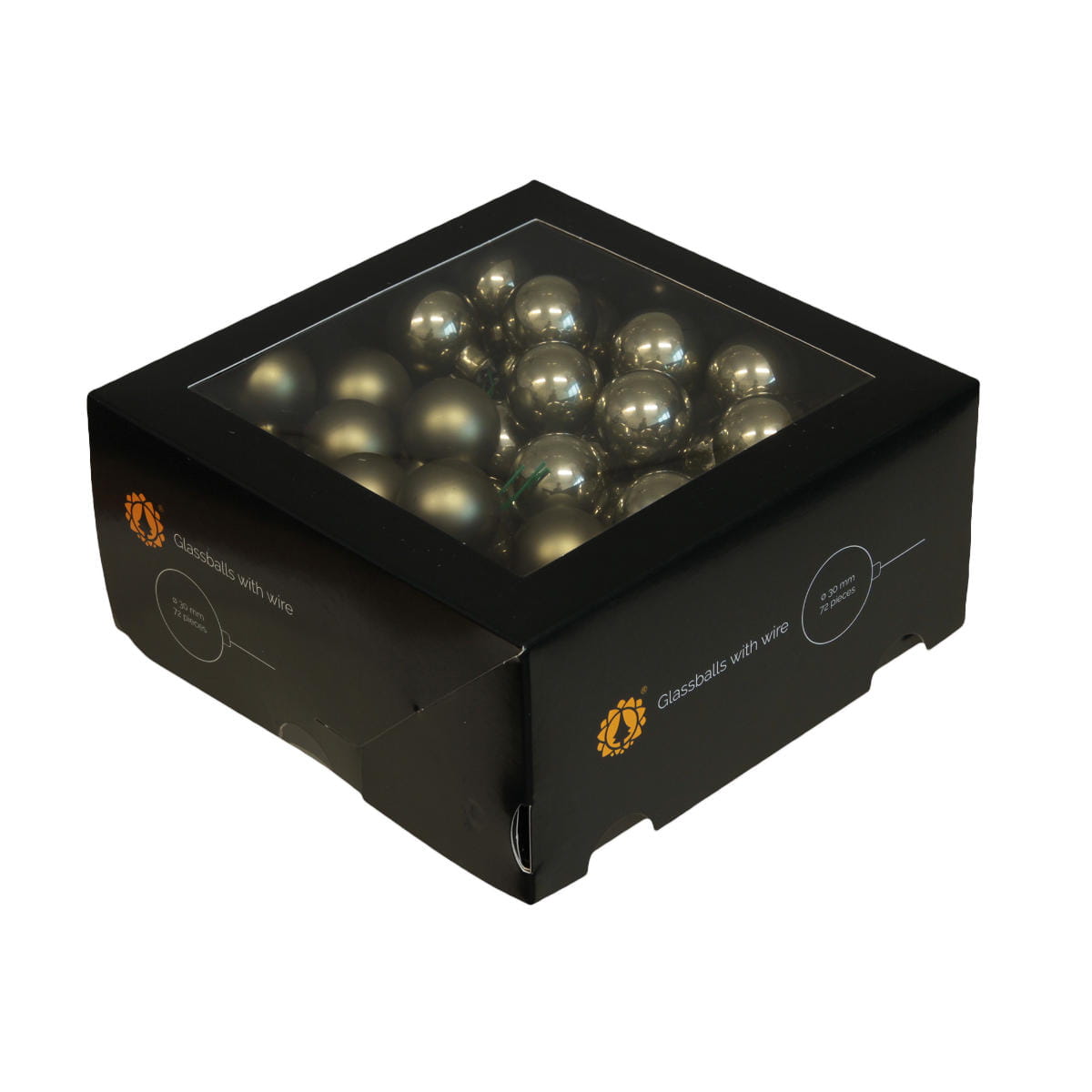 Bombki Szklane na Druciku 30mm Kartonik kpl. 72szt Błysk/Mat - Szarozielony