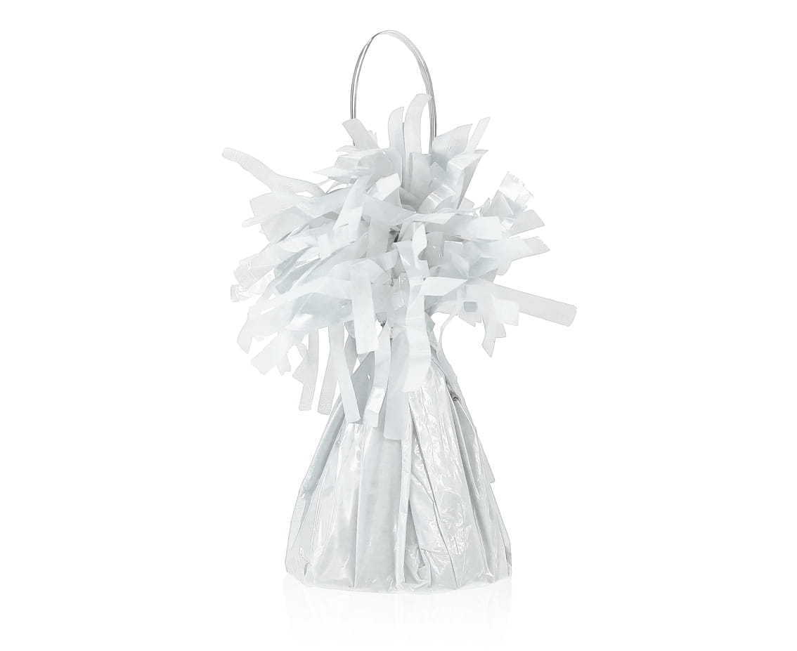 Stożkowy ciężarek do balonów, pokryty folią w białym kolorze. Idealnie sprawdzi się przy tworzeniu dekoracji balonowych na różne okazje. Ciężarek o wadze 145g, przeznaczony do utrzymywania balonów napełnionych helem.