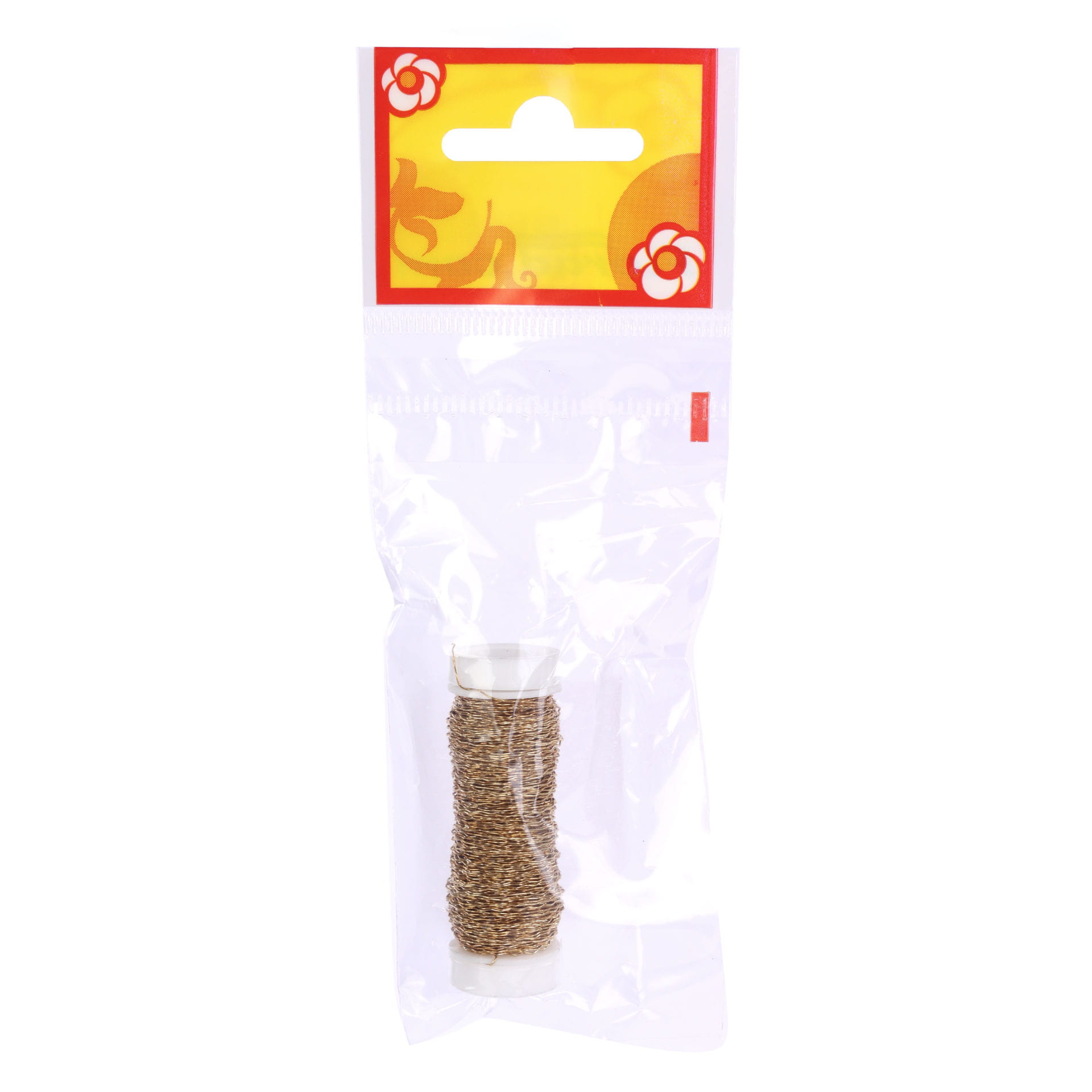 Karbowany drucik florystyczny na szpulce, w kolorze złotym. Waga : 25 gramów, średnica drutu : 0,3mm. Bardzo elastyczny i łatwy w formowaniu a dodatkowo wytrzymały. Doskonale nadaje się do pracy z żywymi jak i sztucznymi roślinami. Złoty - ozdobny kolor powoduje, że możemy go stosować nie tylko jako element łączący ale i jako ozdobę. Na szpulce znajduje się ok. 30 metrów drutu.