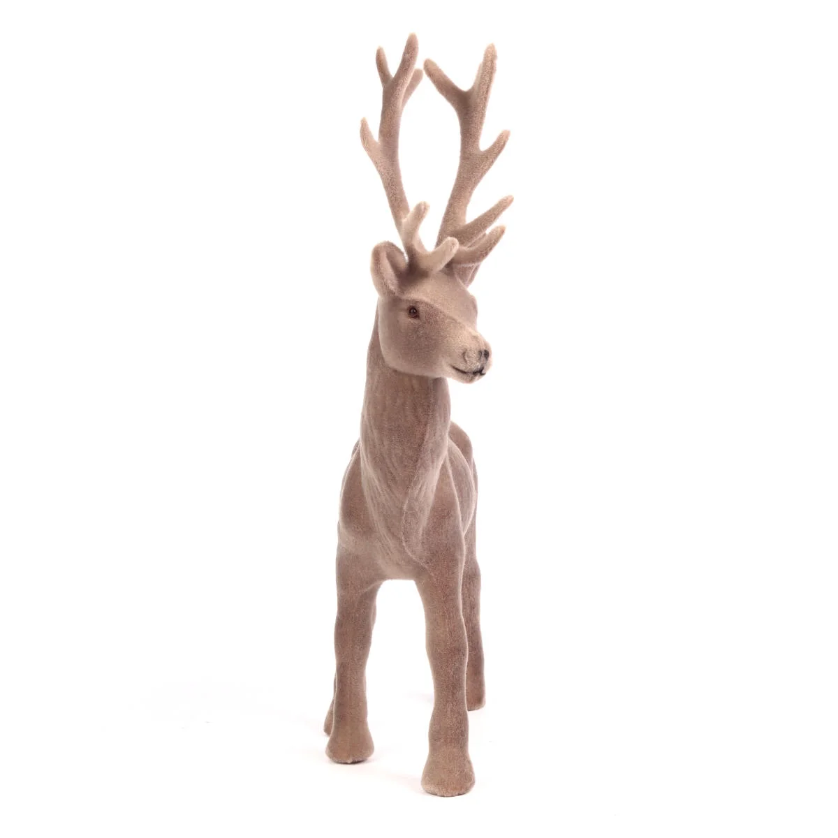 Świąteczna, flokowana figurka przedstawiająca popielatego renifera o wysokości 28cm. Lekka i bardzo starannie wykonana z tworzywa sztucznego figurka, pokryta jest materiałem imitującym welur. Ozdoba ślicznie się prezentuje i jest bardzo miła w dotyku. Renifer będzie doskonałym elementem dekoracji stołu, parapetu lub wianka bożonarodzeniowego. Idealnie sprawdzi się również jako upominek lub dodatek do prezentu.