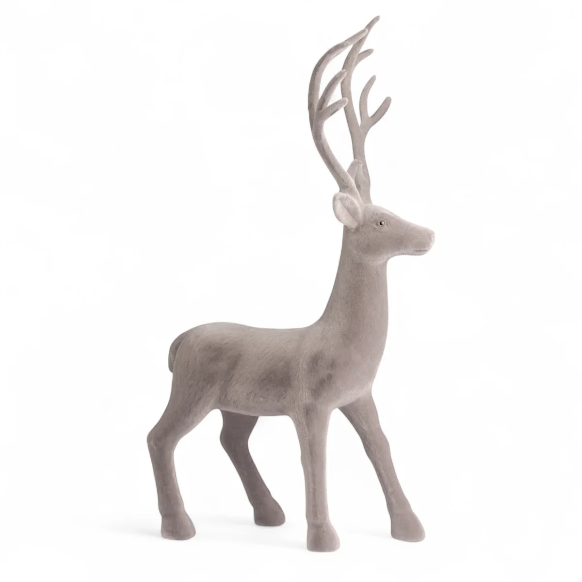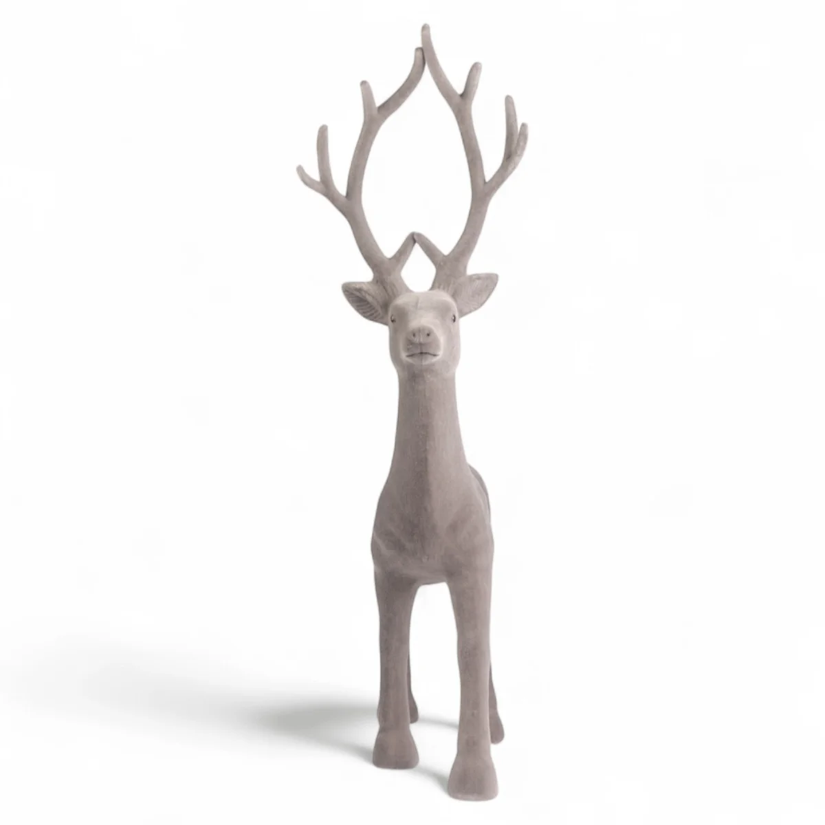 Figurka Renifer Flokowany Welur 73cm - Szary