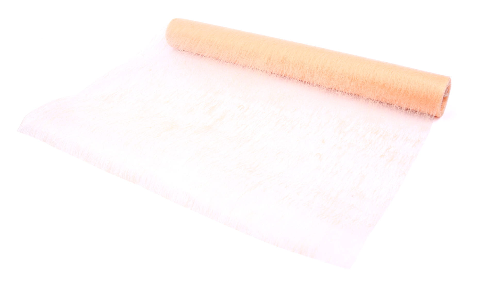 Flizelina dekoracyjna w morelowym kolorze. Obecnie flizelina najczęściej stosowana jest we florystyce, gastronomii i dekoracjach sal.