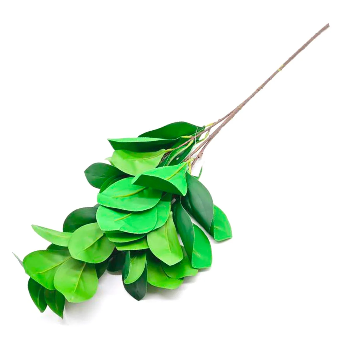 Sztuczna, dekoracyjna gałązka z listkami w ciemnym odcieniu zieleni. Liście wykonane są z materiału syntetycznego, a łodyga z elastycznego, łatwego do formowania tworzywa sztucznego. Gałązka o długości całkowitej 68cm, idealnie sprawdzi się jako dodatek do kompozycji florystycznych.