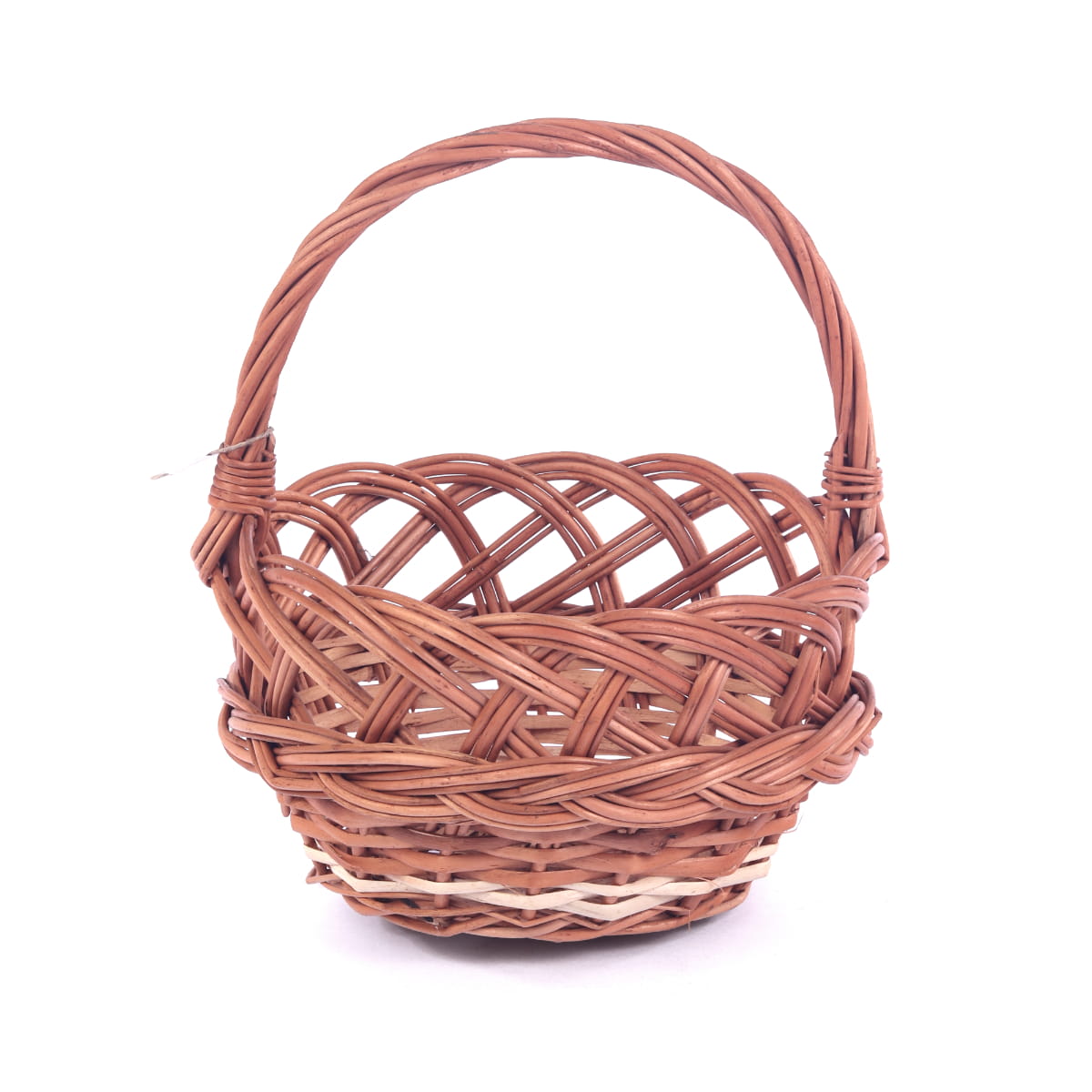 Wielkanocny koszyk z rączką, o wysokości 22cm. Koszyk na święconkę, w całości wykonany z naturalnej, polskiej wikliny, bardzo wytrzymały i w pełni ekologiczny. Ozdobiony jest plecionym wzorem imitującym warkocz. Dodatkowo można go ozdobić kolorowymi wstążkami i gałązkami bukszpanu lub forsycji. Koszyk może służyć również jako osłonka na małą doniczkę z kwiatkiem lub do spakowania upominku. Produkt dostępny jest w wersji owalnej i okrągłej. Koszyk jest wykonany ręcznie, więc jego wymiary mogą się nieznacznie różnić od tych podanych w opisie.