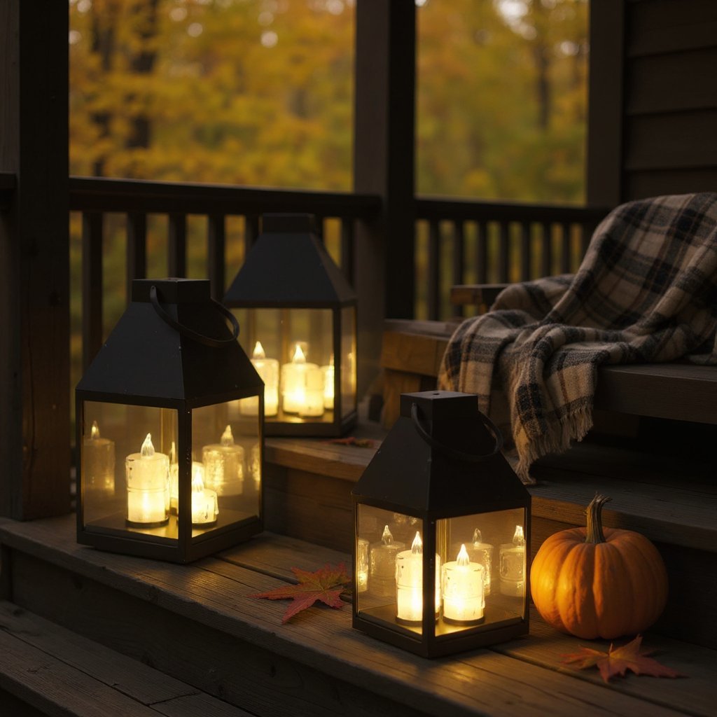 Lampion Plastikowy LED 3 Świece 25cm - Czarny