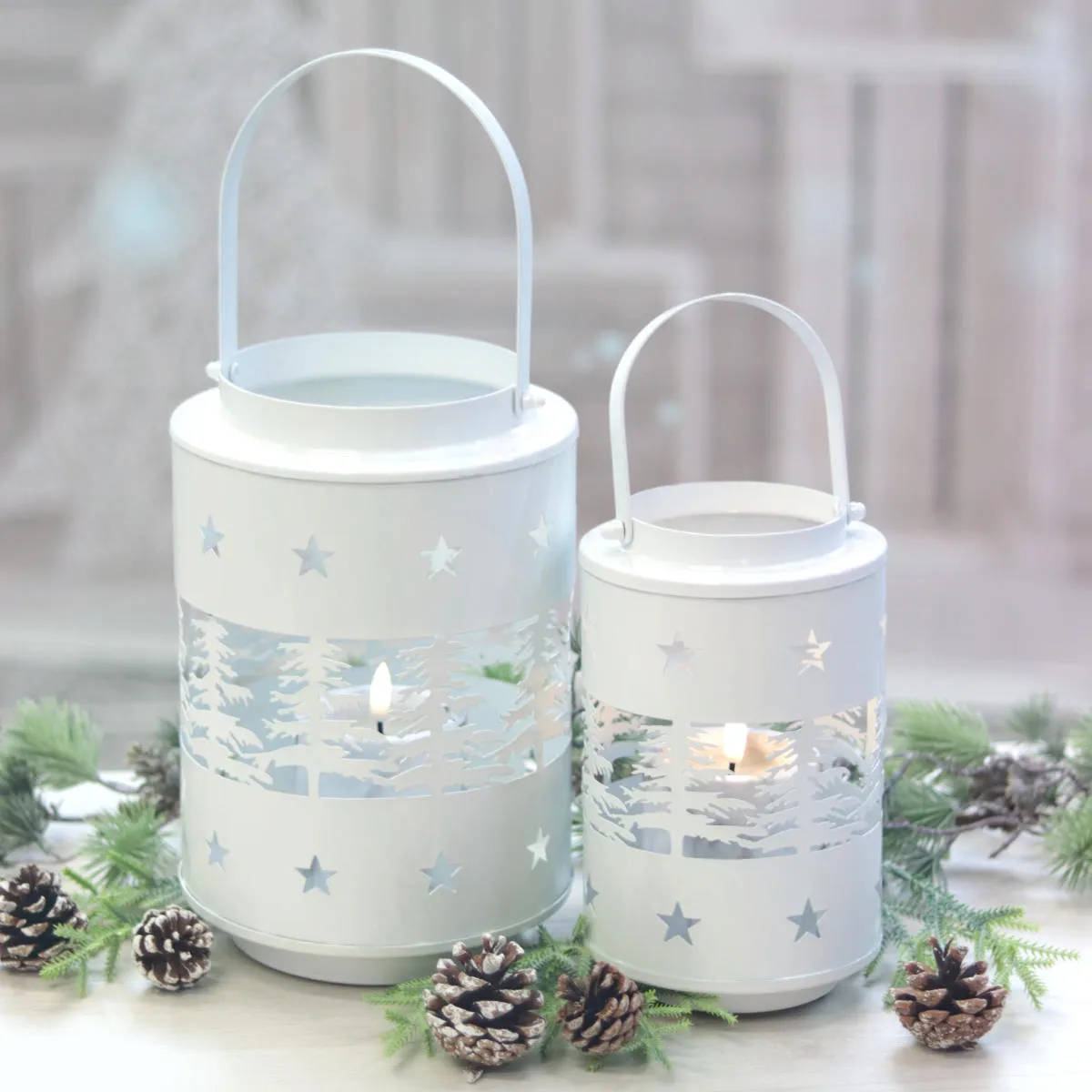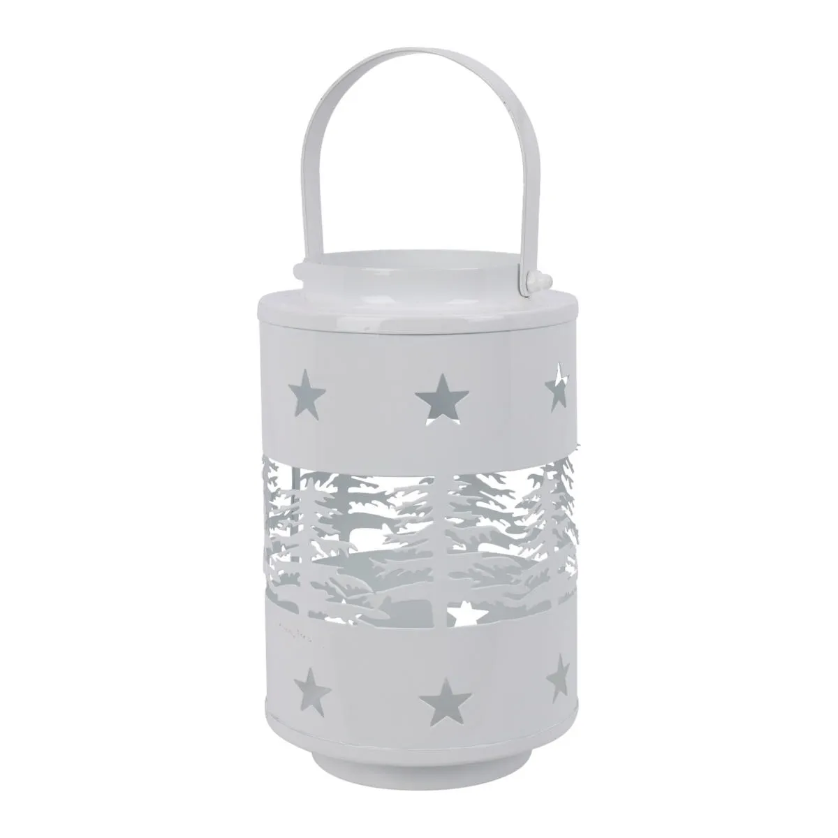 Lampion Świąteczny Metalowy Las 20cm - Biały