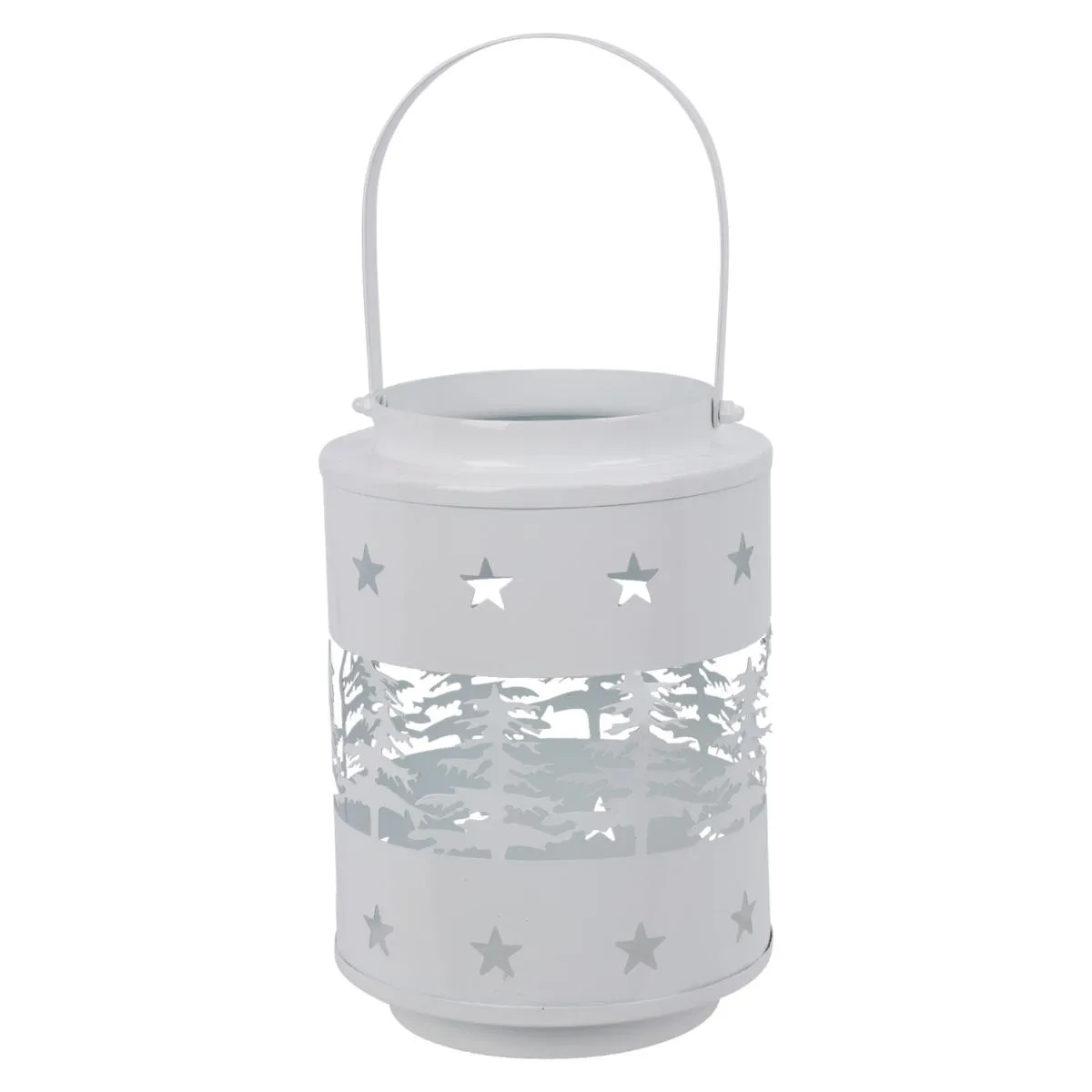 Lampion Świąteczny Metalowy Las 25cm - Biały