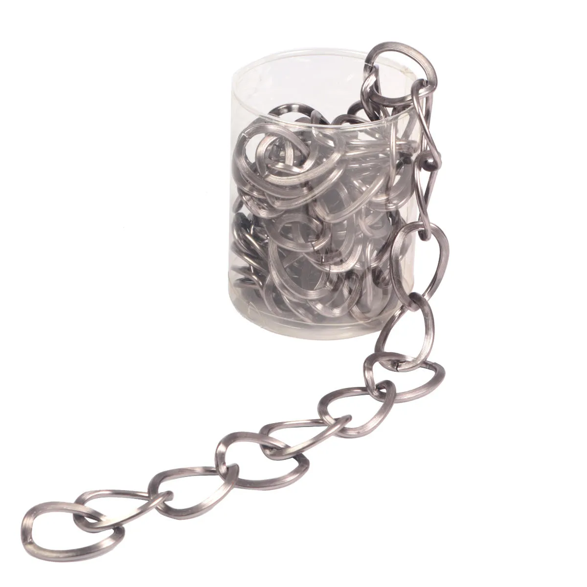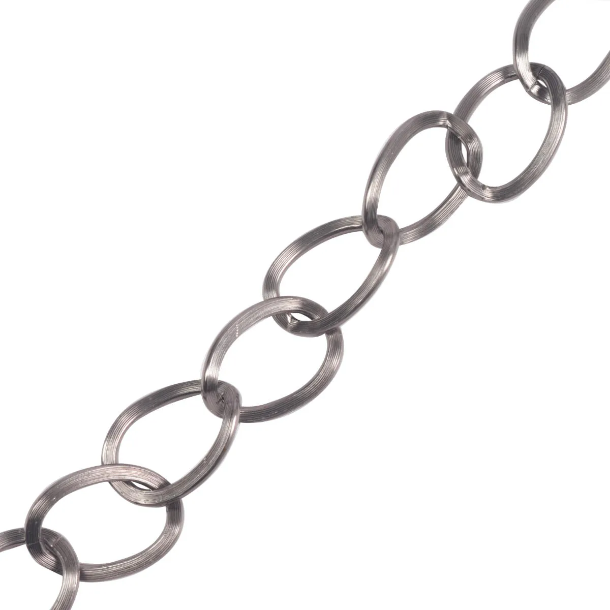 Łańcuch dekoracyjny w kolorze grafitowym. Wykonany z aluminium łańcuch o całkowitej długości 270cm. Posiada duże, płaskie ogniwa, które pokryte są powłoką oksydowaną, co chroni produkt przed uszkodzeniami. Dodatkowo, ogniwa są rozłączane, dzięki temu można w łatwy sposób regulować długość łańcucha i dodawać do niego różnego rodzaju zawieszki. Łańcuch jest lekki i świetnie sprawdzi się przy tworzeniu dekoracji całorocznych oraz świątecznych.