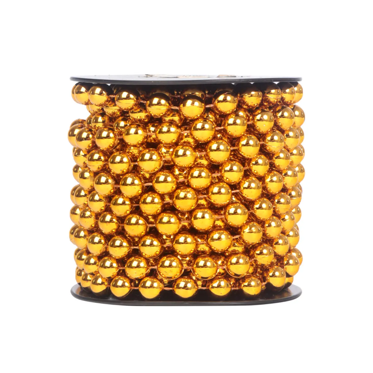 Dekoracyjny łańcuch choinkowy ze złotych koralików na sznurku. Kulki o wielkości 10mm, wykonane z tworzywa sztucznego, są bardzo lekkie i trwałe. Łańcuch ma długość 7 metrów, idealnie nadaje się do oplatania drzewka świątecznego oraz zielonych girland i balustrad schodów.
