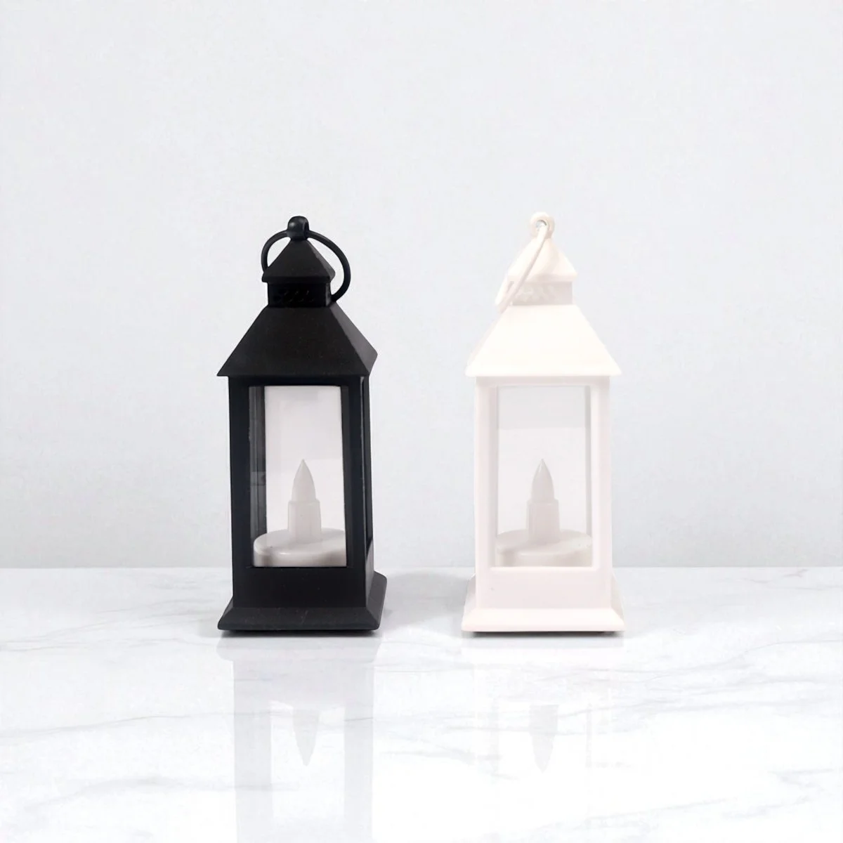 Mała, dekoracyjna latarenka LED, zasilana bateriami. Wykonana z tworzywa sztucznego, z wbudowaną świeczką LED typu tealight z ciepłym światłem. Mini lampion z poręcznym uchwytem, dostępny jest w dwóch kolorach do wyboru : w kolorze białym i czarnym. Nadaje się do postawienia lub zawieszenia w dowolnym miejscu. Może służyć jako lampion adwentowy, samodzielna ozdoba lub element wianka, stroika lub innej kompozycji. Dioda w świeczce zasilana jest trzema bateriami typu AG10 (w zestawie).