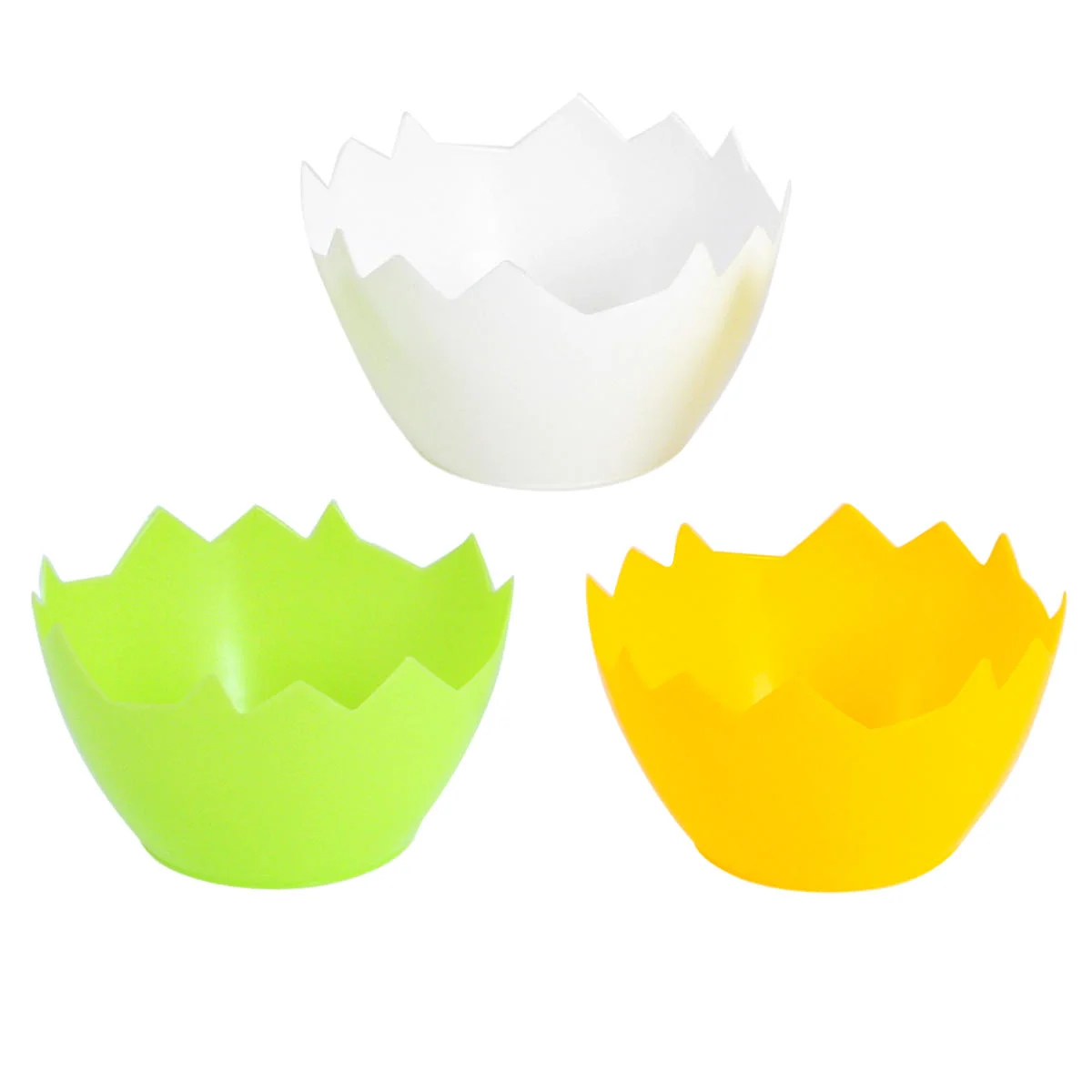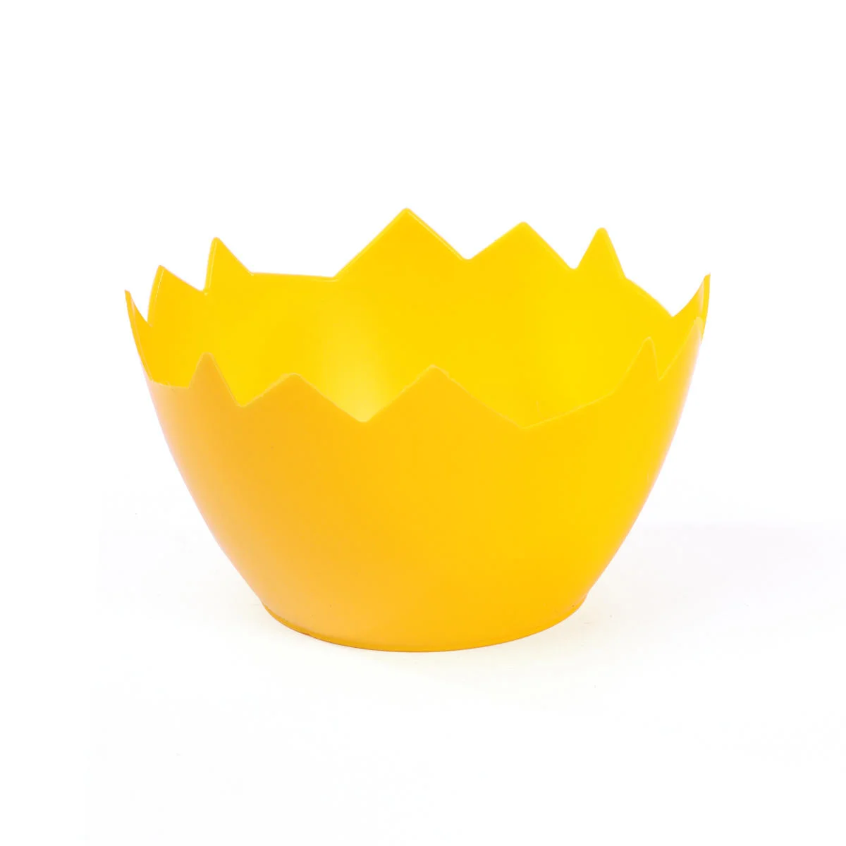 Dekoracyjna osłonka wielkanocna w kształcie skorupki jajka. Wykonana z tworzywa sztucznego, dostępna w trzech kolorach do wyboru : zielona, biała i żółta. Idealnie sprawdzi się przy tworzeniu kompozycji florystycznych, jako osłonka na doniczkę, osłonka na rzeżuchę oraz jako pojemnik na słodycze i świąteczna dekoracja stołu.