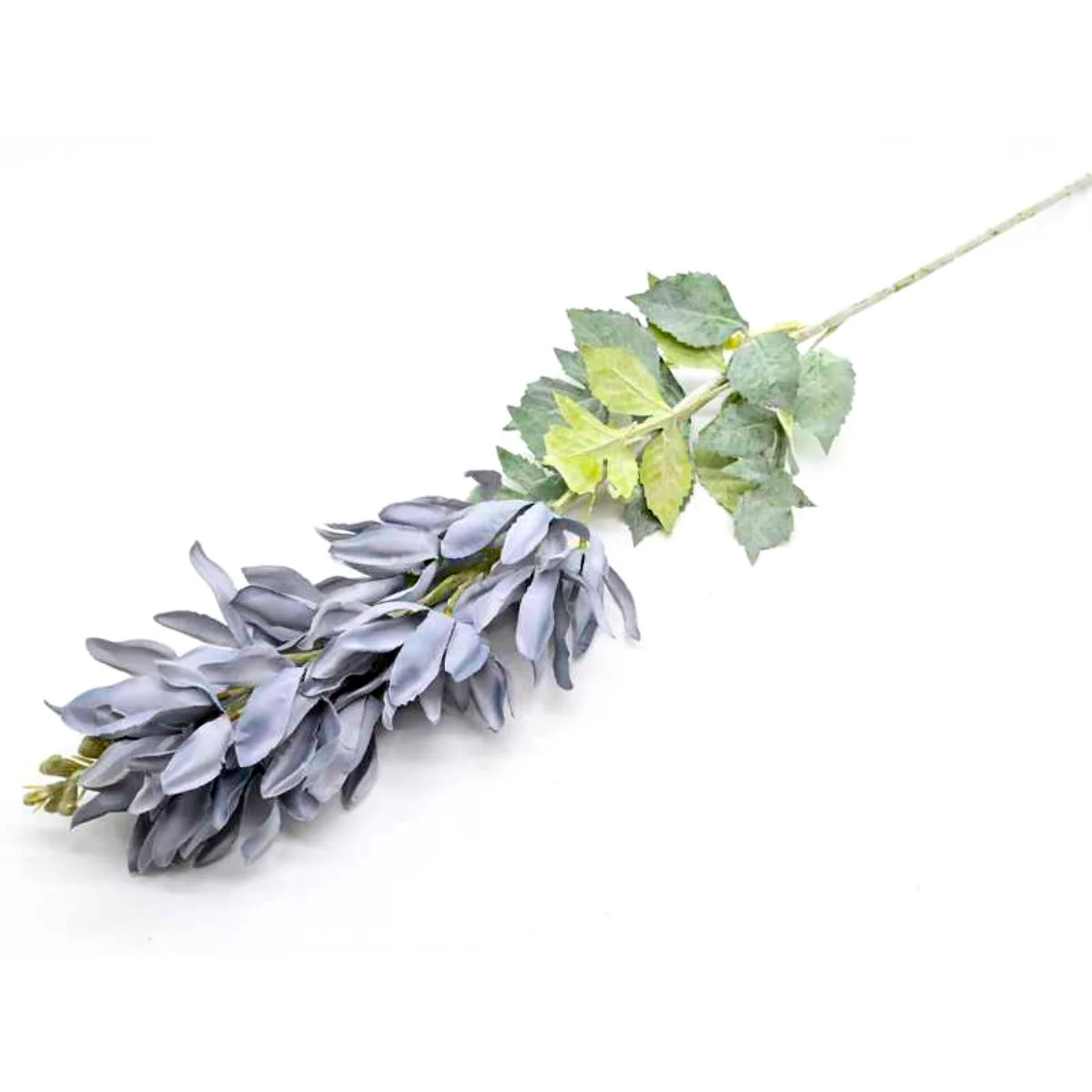 Sztuczna, pojedyncza ostróżka z licznymi niebieskimi kwiatkami i pąkami. Bardzo starannie wykonana z tworzywa sztucznego gałązka z łatwą do dowolnego układania, plastyczną łodygą. Idealnie nadaje się jako samodzielna dekoracja w wazonie, jako element jesiennego bukietu lub innej kompozycji florystycznej. Listki i kwiaty można oddzielić od łodygi i wykorzystać przy tworzeniu stroików lub wianków.