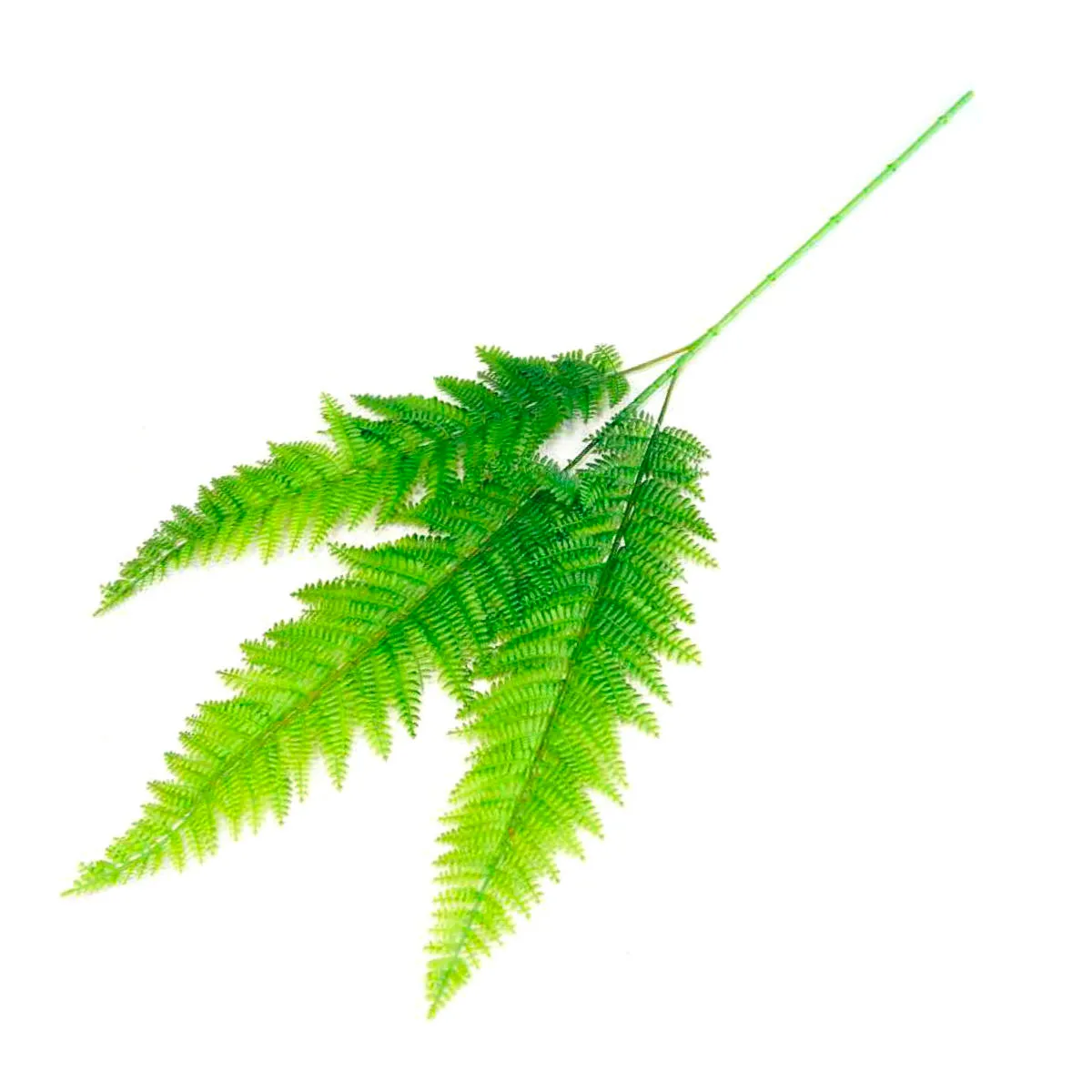 Ozdobna gałązka paproci, z liśćmi w dwóch odcieniach koloru zielonego. Wykonana jest w całości z tworzywa sztucznego i posiada 3 pojedyncze gałązki, które łącza się w jedną łodygę zakończoną plastikiem. Gałązkę można podzielić na części i wykorzystać małe elementy przy tworzeniu stroików i wianków. To idealna baza do tworzenia dekoracji florystycznych.
