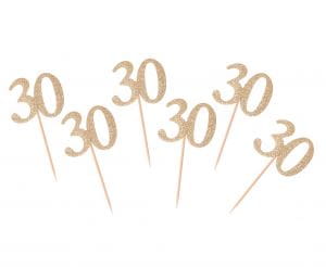 Pikery do Babeczek 30-tka 10cm kpl. 6szt - Złoty