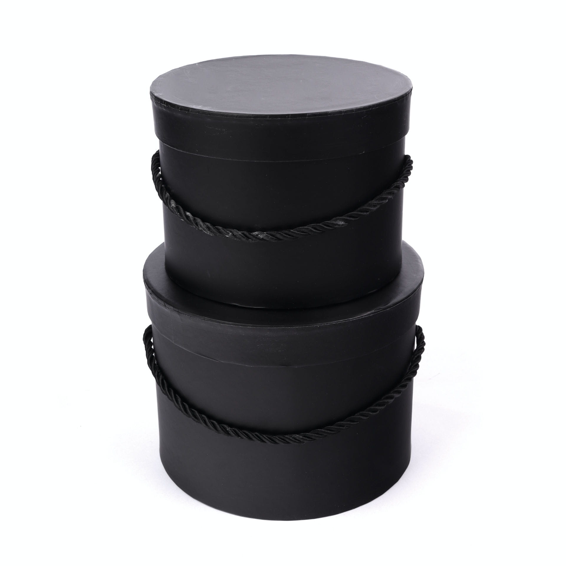 Komplet dwóch pudełek typu Flower Box w kolorze czarnym, z uchwytem ze sznurka.