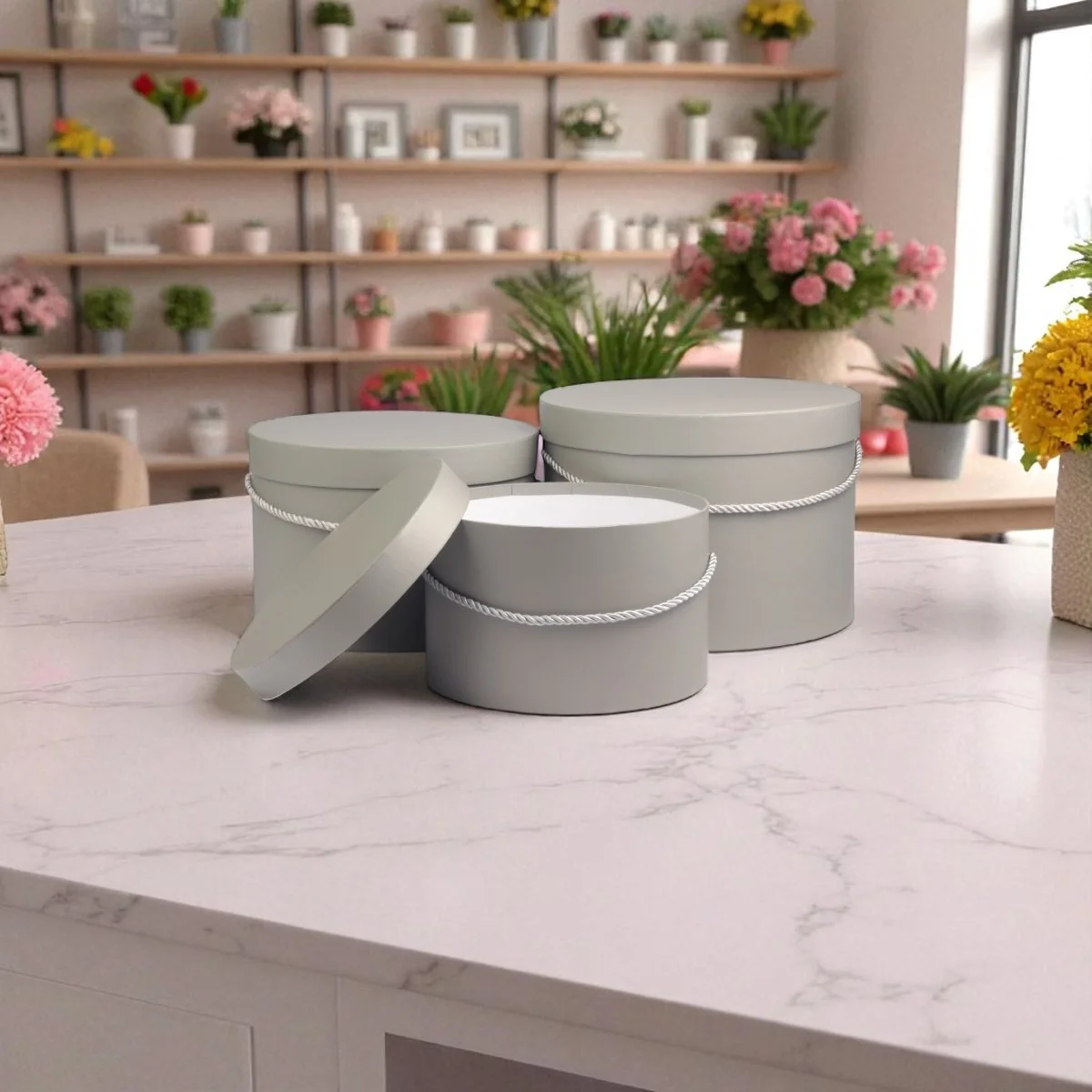 Pudełko Flower Box Papierowy Okrągły kpl. 3szt - Szary