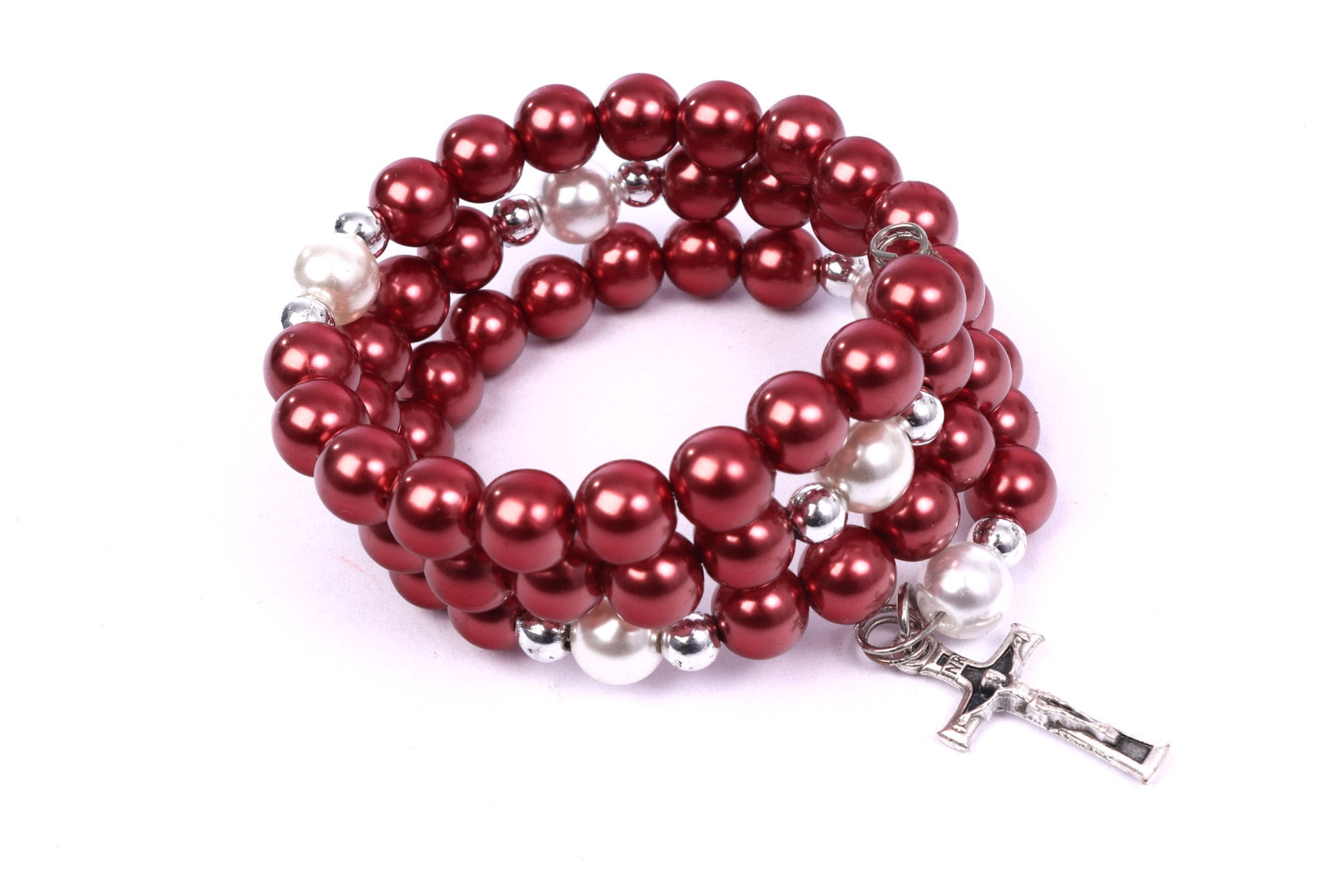Pełna wersja różańca zakończona krzyżykiem.