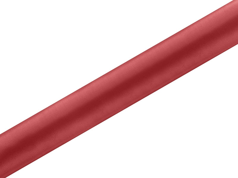 Tkanina dekoracyjna, satyna w kolorze czerwonym. Brzegi tkaniny zostały zabezpieczone przed pruciem. Rolka ma szerokość 36cm i znajduje się na niej 9 metrów materiału. Satyna dobrze się układa, co ułatwia wykonanie aranżacji. Produkt idealny do ozdoby stołu, jako bieżnik oraz na ścianę jako tło.