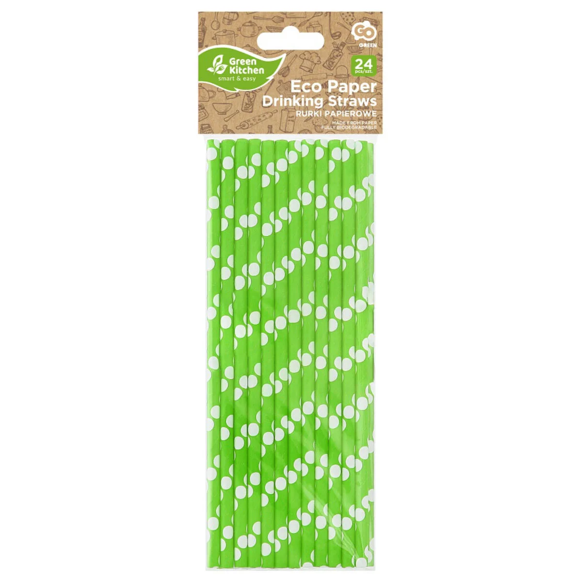 Ekologiczne słomki papierowe do napojów, wykonane z biodegradowalnego papieru. Uniwersalne, jednorazowe słomki idealnie sprawdzą się na każdej uroczystości i są w 100% kompostowalne. W komplecie znajdują się 24 zielone słomki z białymi grochami.