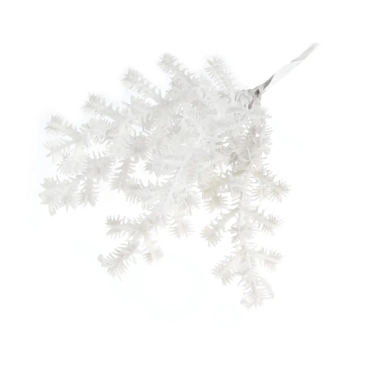 Sztuczna, dekoracyjna gałązka świąteczna w formie bukietu. Bukiecik wykonany jest z tworzywa sztucznego i posiada 5 białych gałązek imitujących gałązki cisu. Wszystkie łącza się w jedną łodygę zabezpieczoną taśmą florystyczną. Idealnie sprawdzą się jako dodatek przy tworzeniu świątecznych stroików, wianków oraz kompozycji florystycznych.