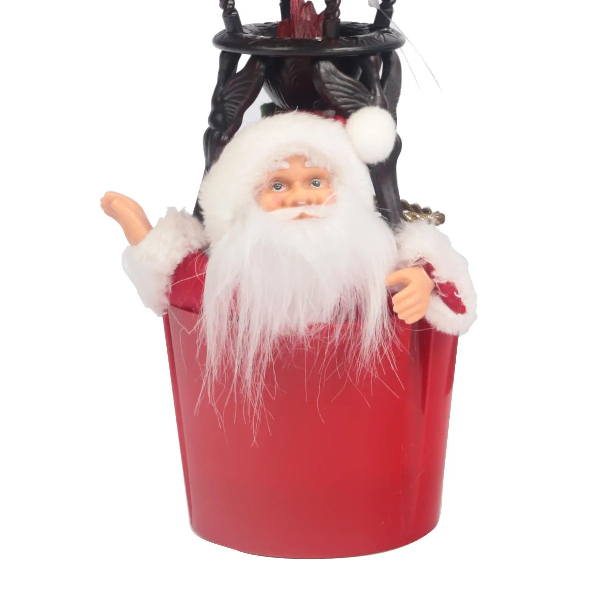 Świąteczna dekoracja LED o wysokości 40cm, Mikołaj w balonie. Całość wykonana jest z wysokiej jakości tworzywa sztucznego i utrzymana w tradycyjnych, bożonarodzeniowych barwach. Ozdobę można postawić lub zawiesić. Posiada jedną diodę LED z mrugającym, ciepłym światłem, imitującym prawdziwy płomień pod balonem. Dioda zasilana jest 3 bateriami typu AAA (brak w zestawie). Balon z Mikołajem będzie doskonałym elementem dekoracji choinki, girlandy, parapetu lub stołu. Idealnie sprawdzi się również jako upominek lub dodatek do prezentu. Produkt przeznaczony do użytku wewnątrz pomieszczeń.