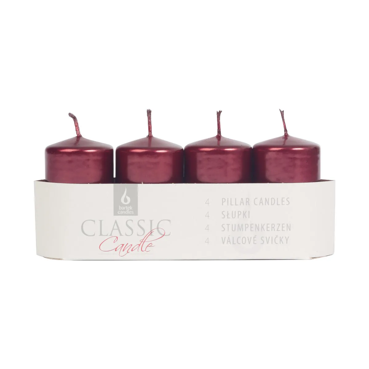Świeca Adwentowa Słupek 4x7cm kpl. 4szt Metalik - Bordowy