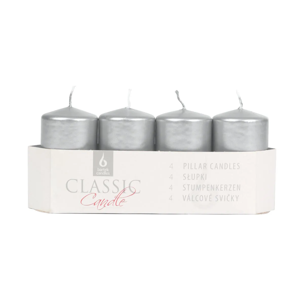 Świeca Adwentowa Słupek 4x7cm kpl. 4szt Metalik - Srebrny