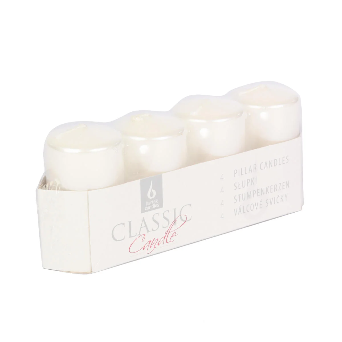 Gładkie, dekoracyjne świeczki w kształcie walca w błyszczącym, perłowym kolorze. Parafinowe świece słupki o czasie palenia do 10h. Idealnie nadają się do stroików i świeczników, podczas dowolnych uroczystości. Produkty marki Bartek wypalają się równomiernie, nie kapią i nie kopcą.
