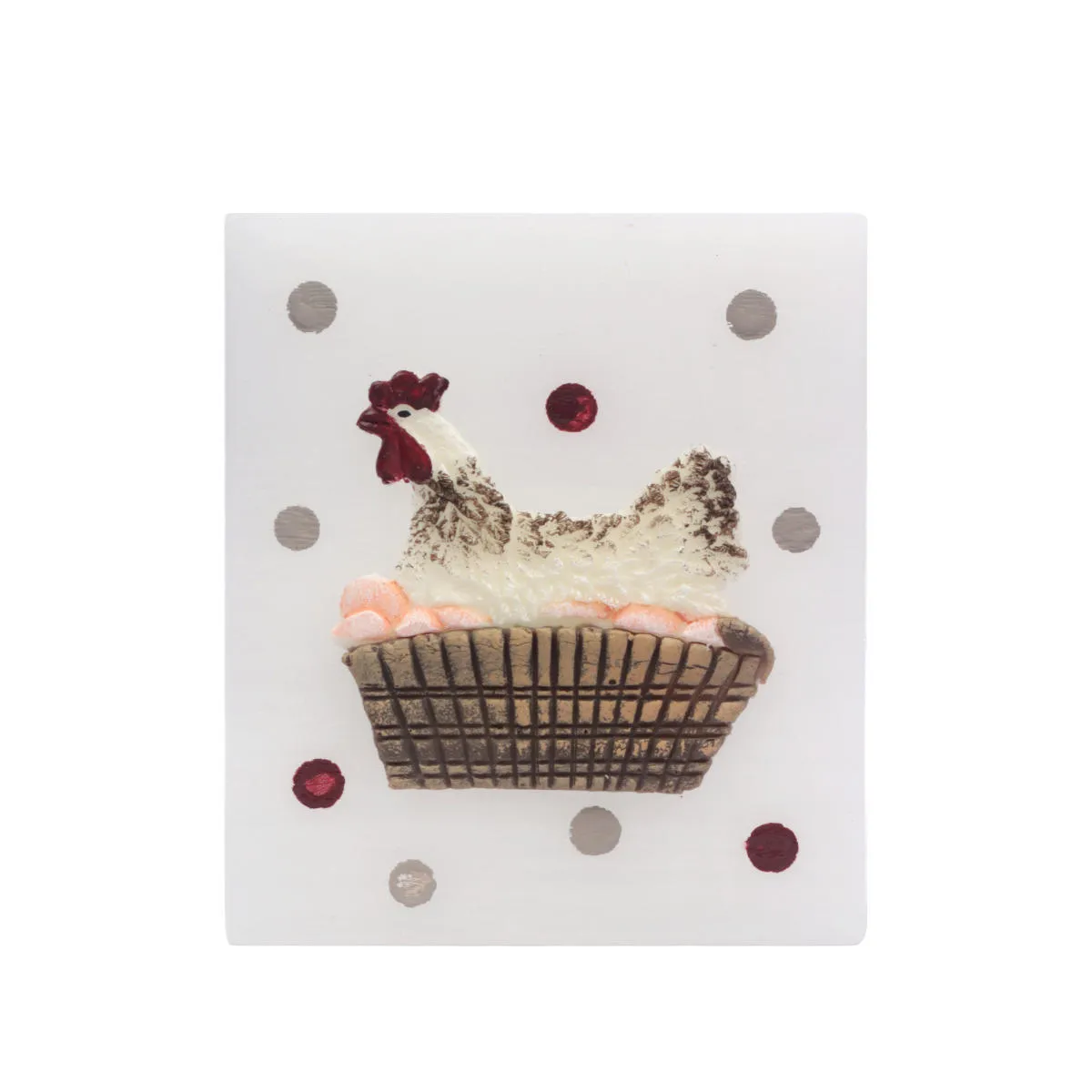 Wielkanocny, kwadratowy lampion o wysokości 11,5cm, z kolekcji Easter Dots. Wykonany jest z parafiny i ozdobiony aplikacją w postaci wielkanocnej kury oraz kropkami w szarym i czerwonym kolorze. Idealnie sprawdzi się jako samodzielna dekoracja stołu lub element stroika i każdej dekoracji świątecznej. Będzie również doskonałym świątecznym upominkiem.