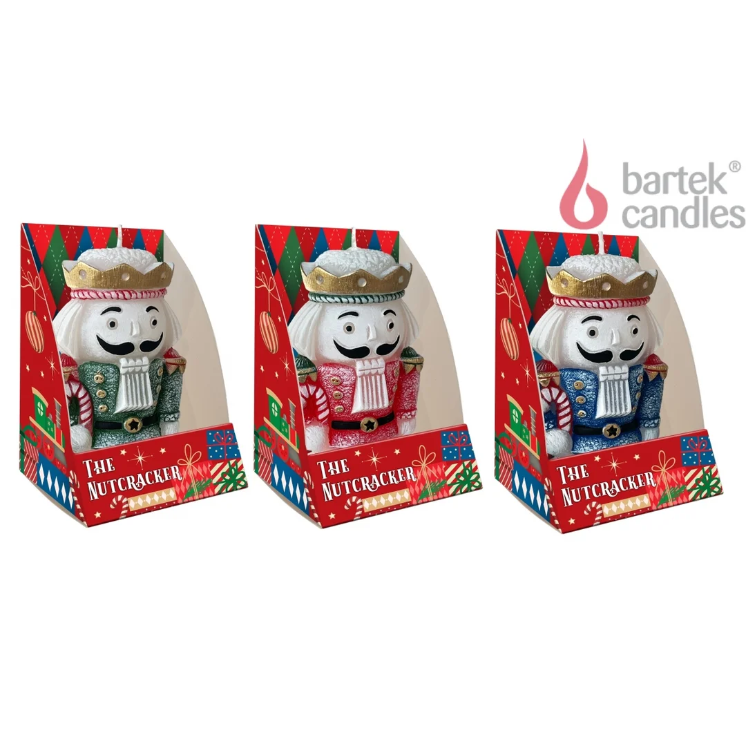 Świeczka świąteczna w kształcie dziadka do orzechów o wysokości 11cm. Dekoracyjna świeczka, dostępna w trzech kolorach do wyboru, o czasie spalania do 15 godzin. Idealnie nadaje się na element dekoracyjny wianka lub stroika. Świetnie sprawdzi się również jako upominek lub dodatek do prezentu.