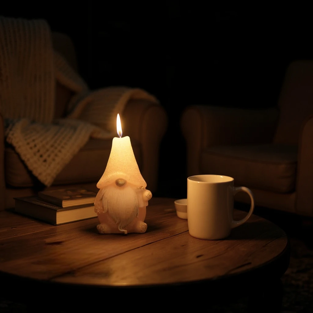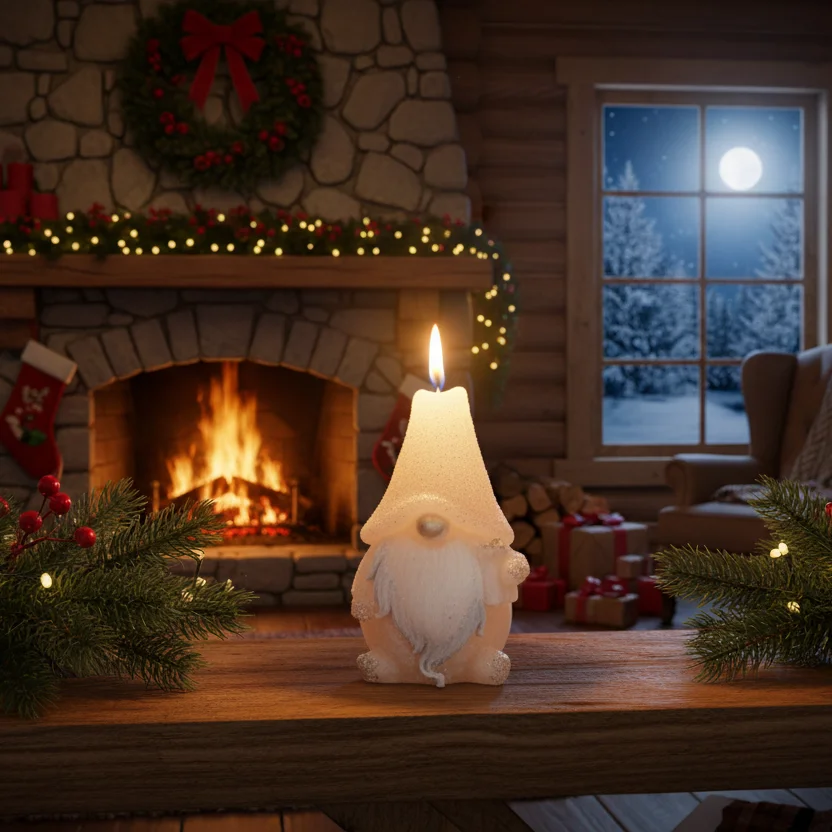 Świeca Figurka Gnom 8x14cm - Kremowy