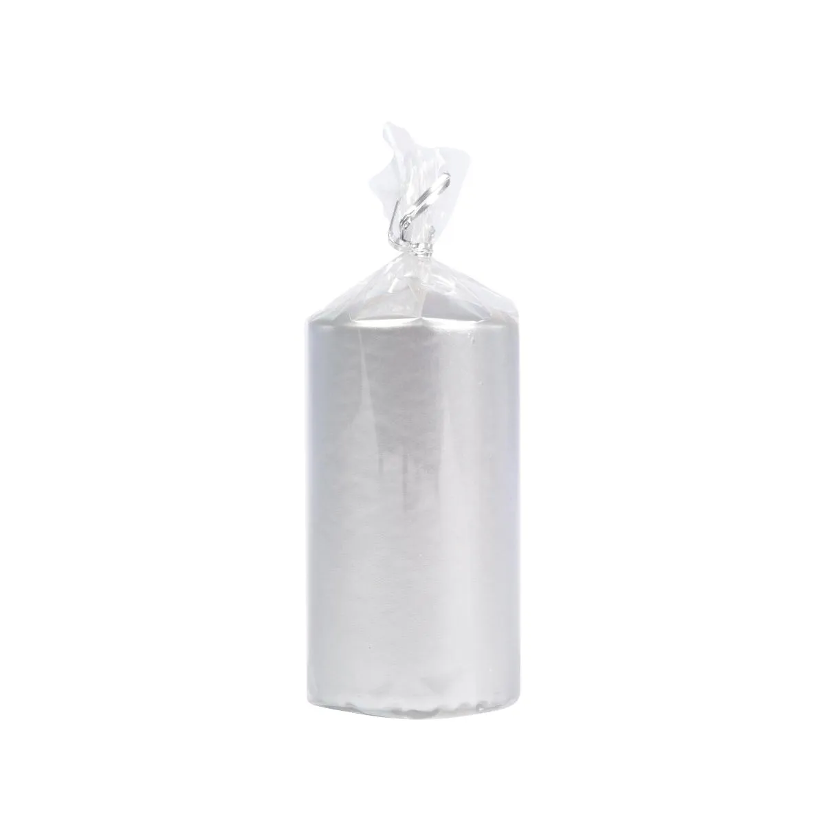 Świeca Gładka Słupek 5x10cm Metalik - Srebrny