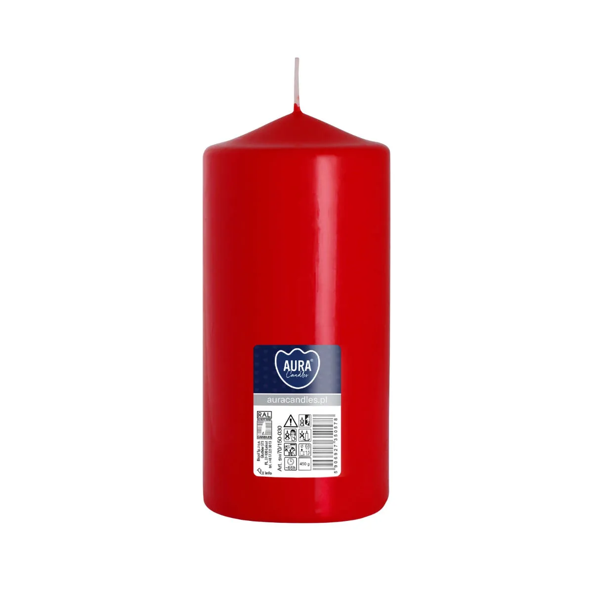 Świeca Gładka Słupek 7x15cm 030 - Czerwony