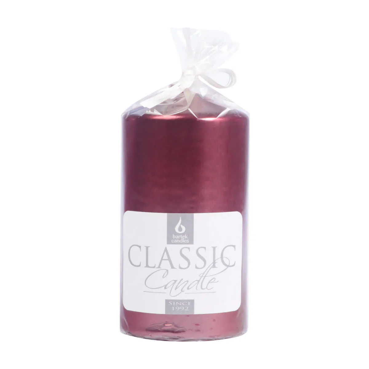 Bezwonna świeca w kształcie walca o wysokości 15cm i średnicy 8cm. Parafinowa świeca słupek w kolorze bordowym z metalicznym wykończeniem, o czasie palenia do ok. 68 godzin. Idealnie nadaje się do stroików i świeczników, podczas dowolnych uroczystości. Produkty marki BARTEK posiadają atest PZH, wypalają się równomiernie, nie kapią i nie kopcą.