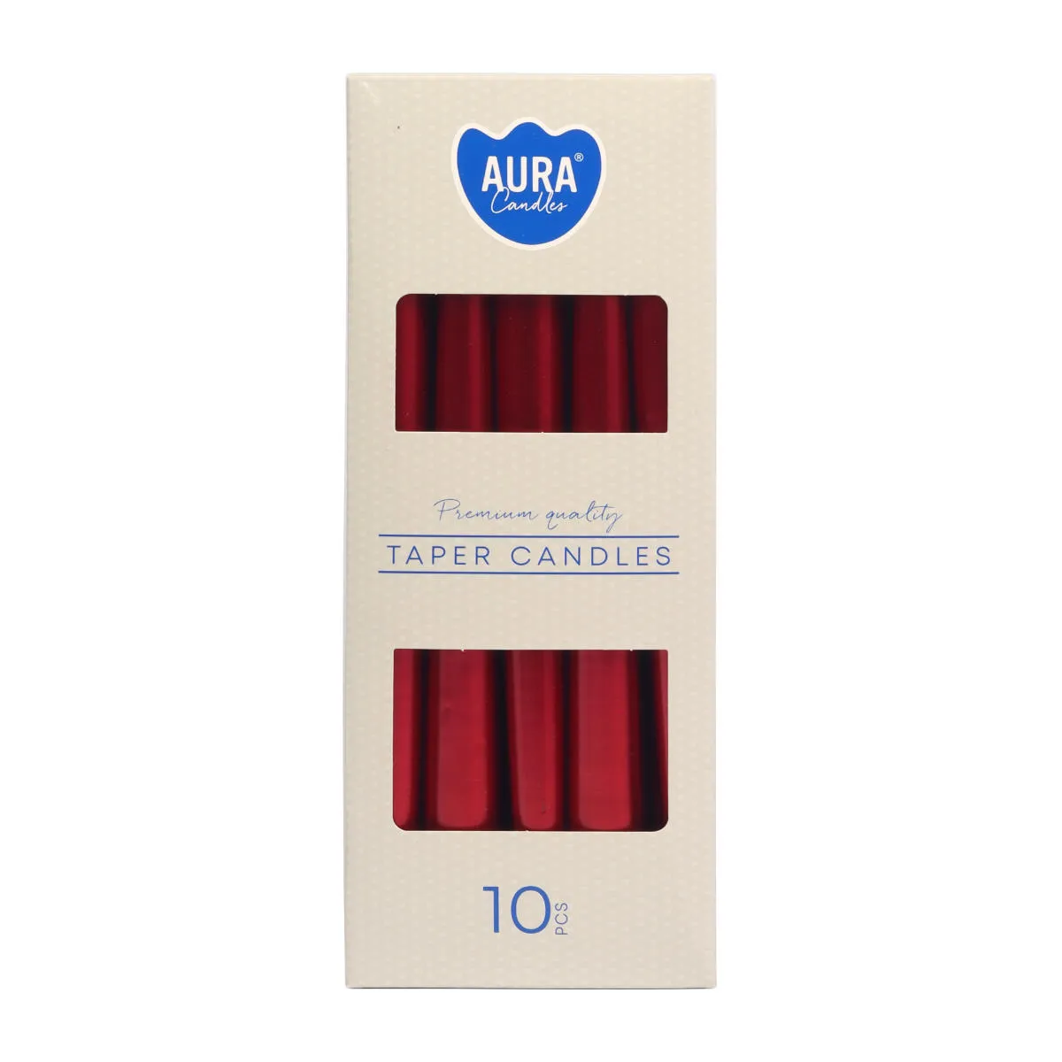 Świeca Gładka Stożkowa 24,5cm kpl. 10szt Metalik - Czerwony