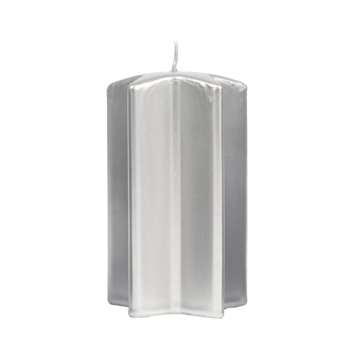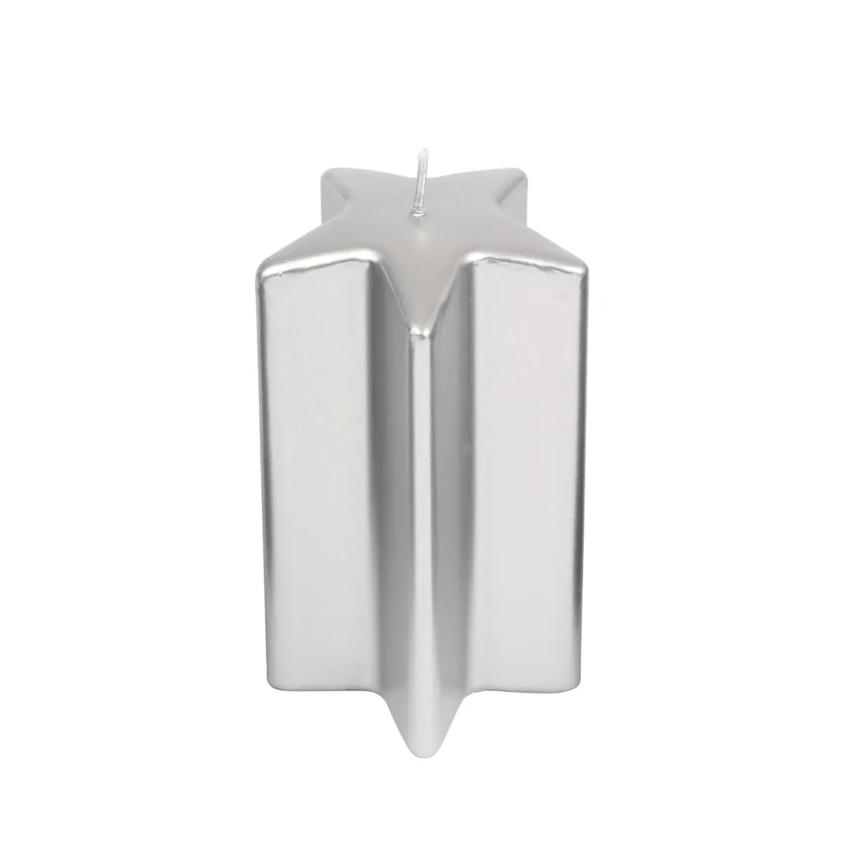 Świeca świąteczna gwiazda o wysokości 13cm. Dekoracyjna świeca parafinowa w srebrnym, metalizowanym kolorze. Świeca o czasie palenia do ok. 39 godzin, jest bezzapachowa i idealnie sprawdzi się jako dekoracja stroika, upominek lub dodatek do prezentu.